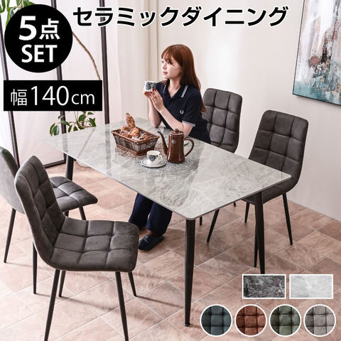 幅140セラミックダイニング5点セット(テーブル+チェア4脚付) ダイニングテーブル 食卓テーブル 食卓 大理石調 4人掛け BON ボン / テーブル:グレー / チェア:ダークグレー / -ART