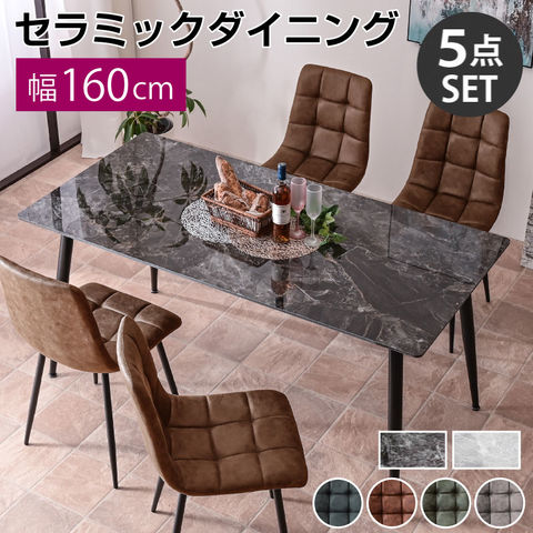 幅160セラミックダイニング5点セット(テーブル+チェア4脚付) ダイニングテーブル食卓 大理石調 4人掛け BON ボン / テーブル:ブラック(脚の長さ70cm) / チェア:ブラウン / -ART