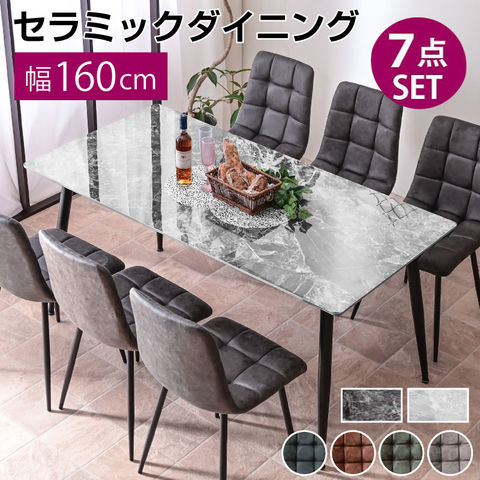幅160セラミックダイニング7点セット(テーブル+チェア6脚付) ダイニングテーブル食卓 大理石調 6人掛け BON ボン / テーブル:グレー(脚の長さ70cm) / チェア:ダークグレー / -ART