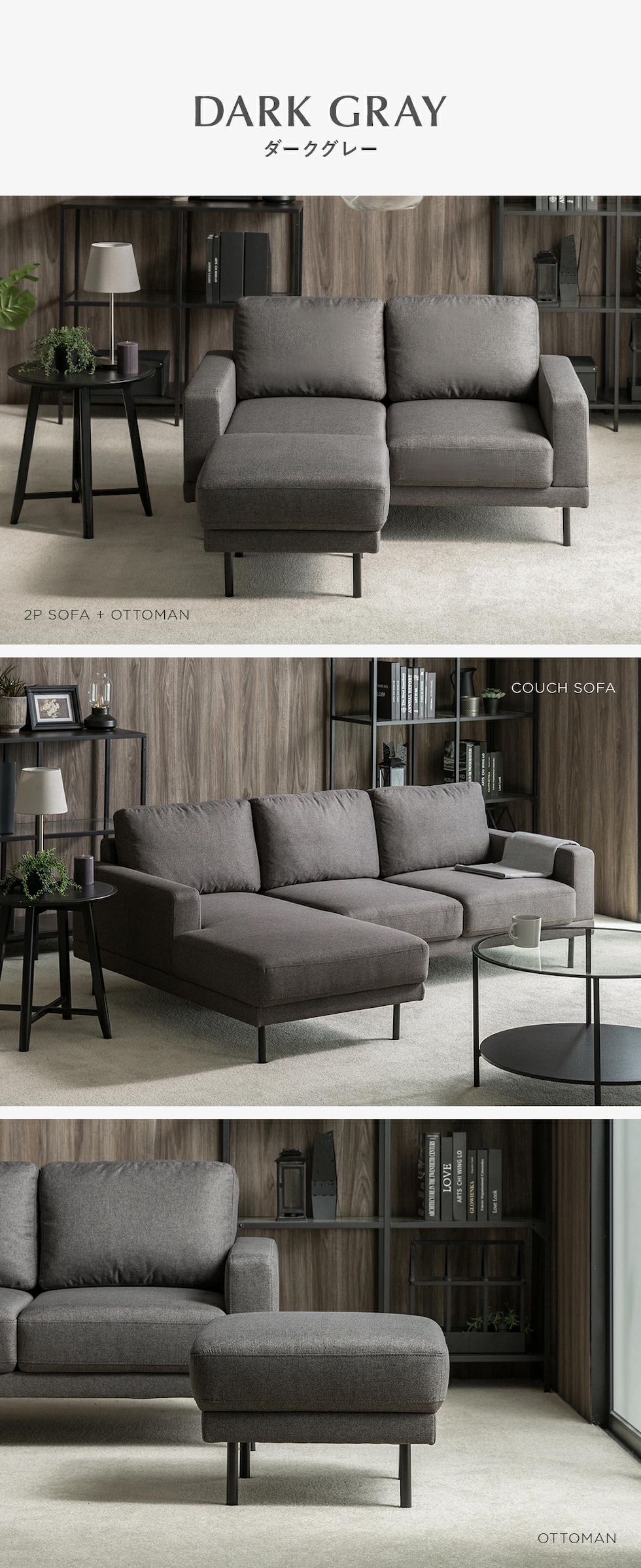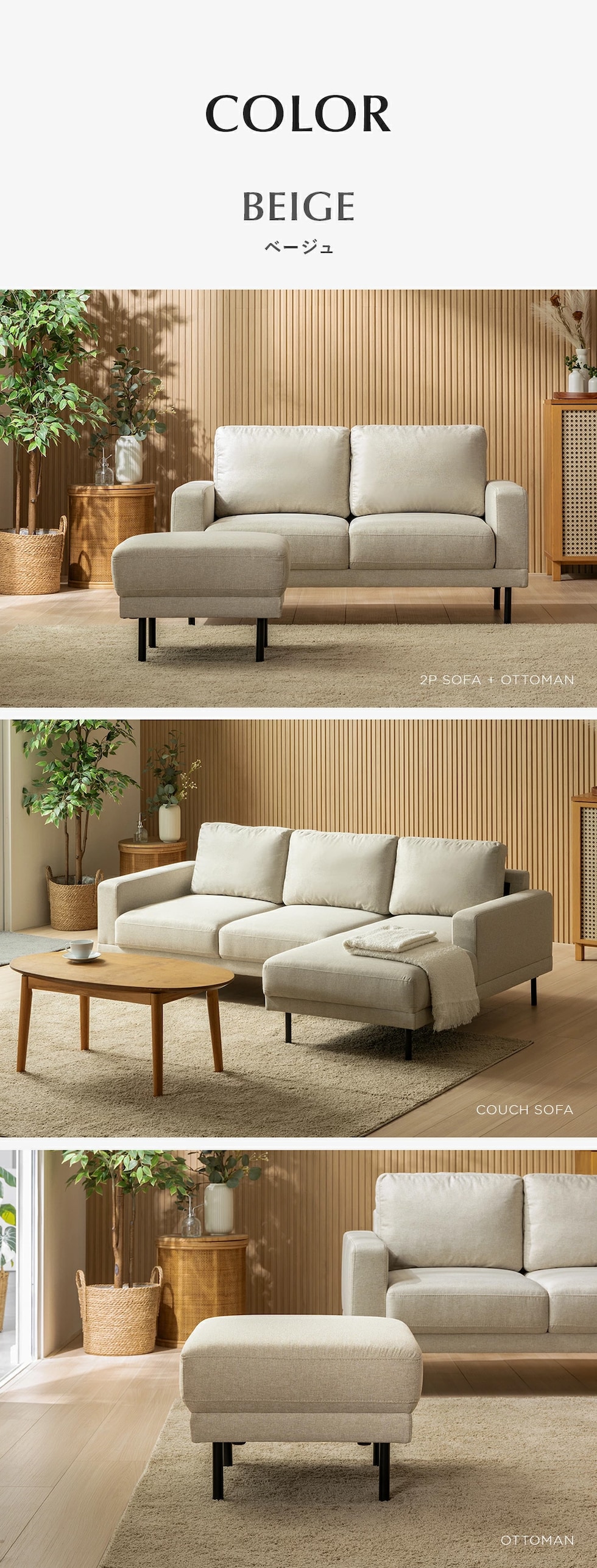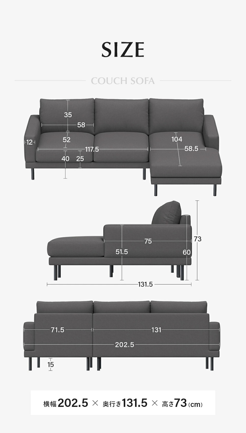 | サイズ | カウチソファ:横幅202.5×奥行き131.5×高さ73cm 2Pソファ:横幅131×奥行き78×高さ73cm オットマン:横幅55×奥行き55×高さ40cm |