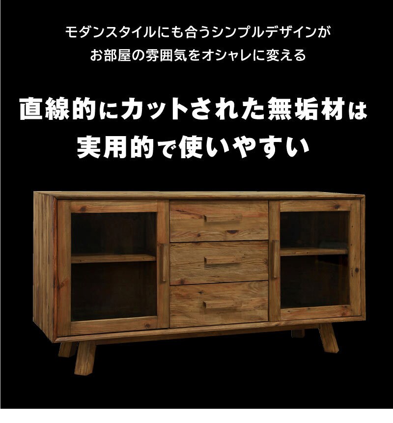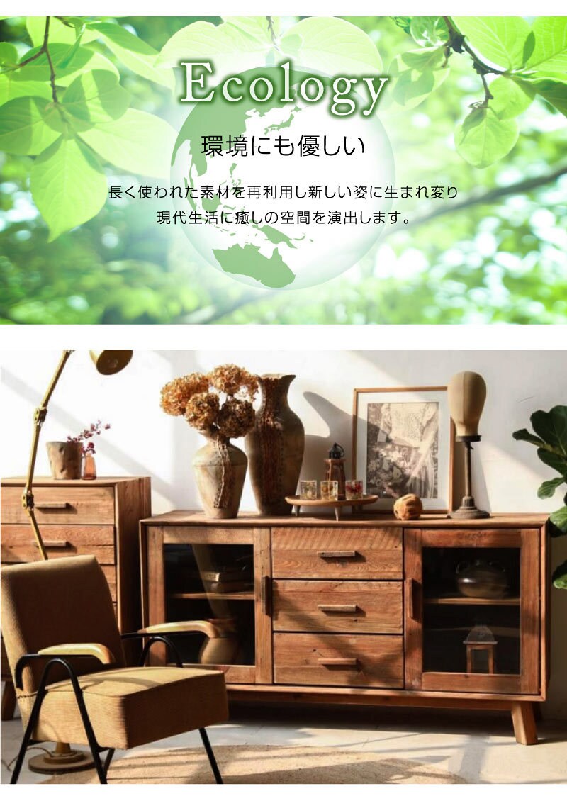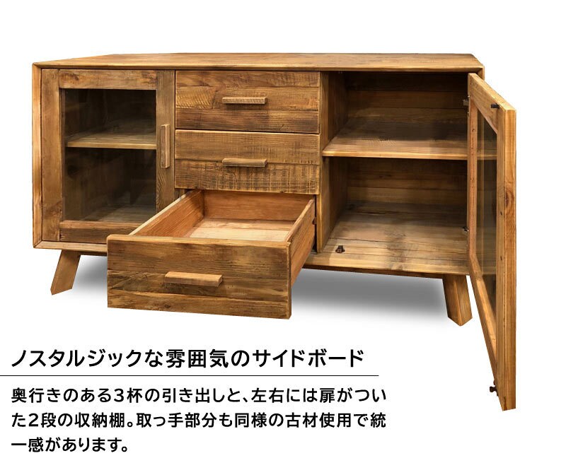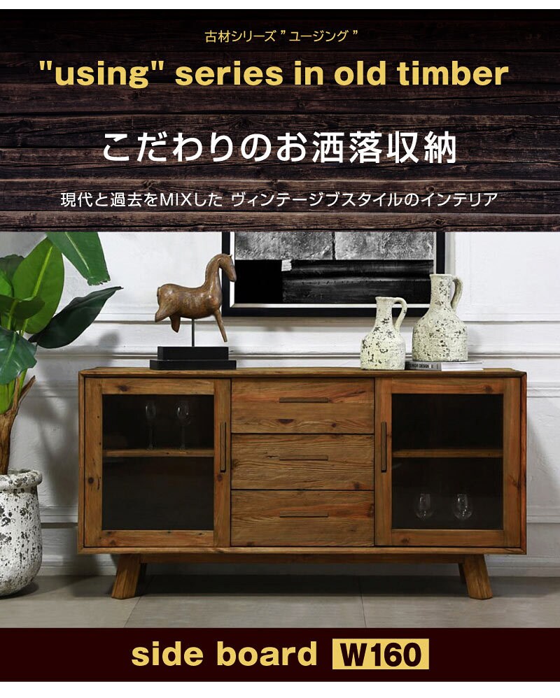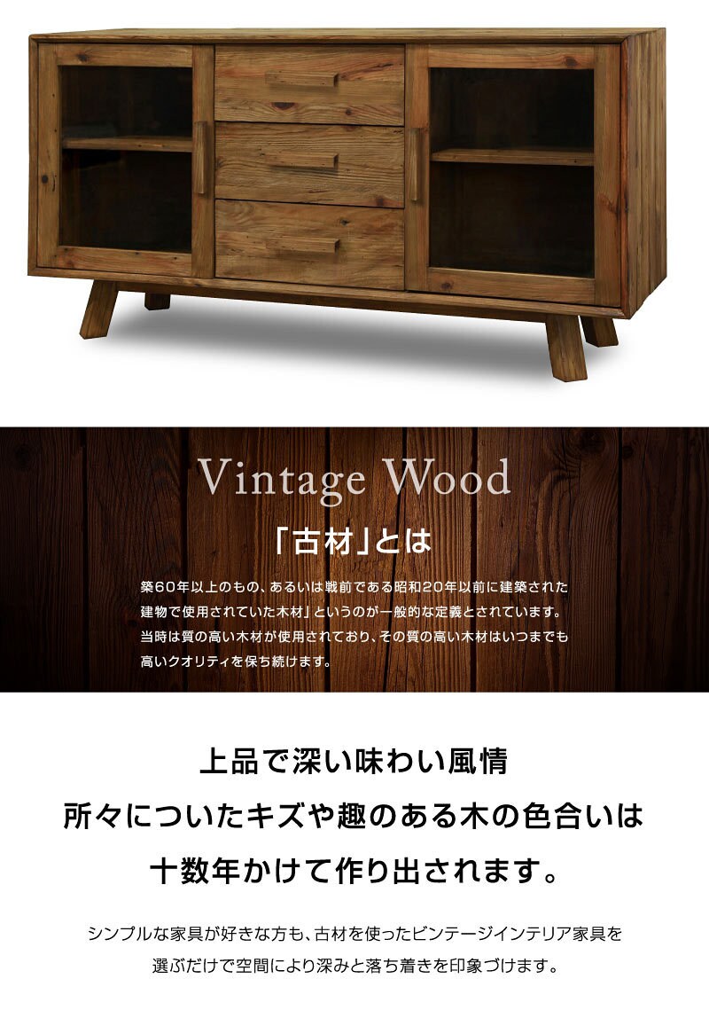 キャビネット 160 古材 サイドボード ローボード リビングボード ヴィンテージ 木製 高級 北欧 ラック 天然木 無垢材 リサイクルパイン / ブラウン / -ART