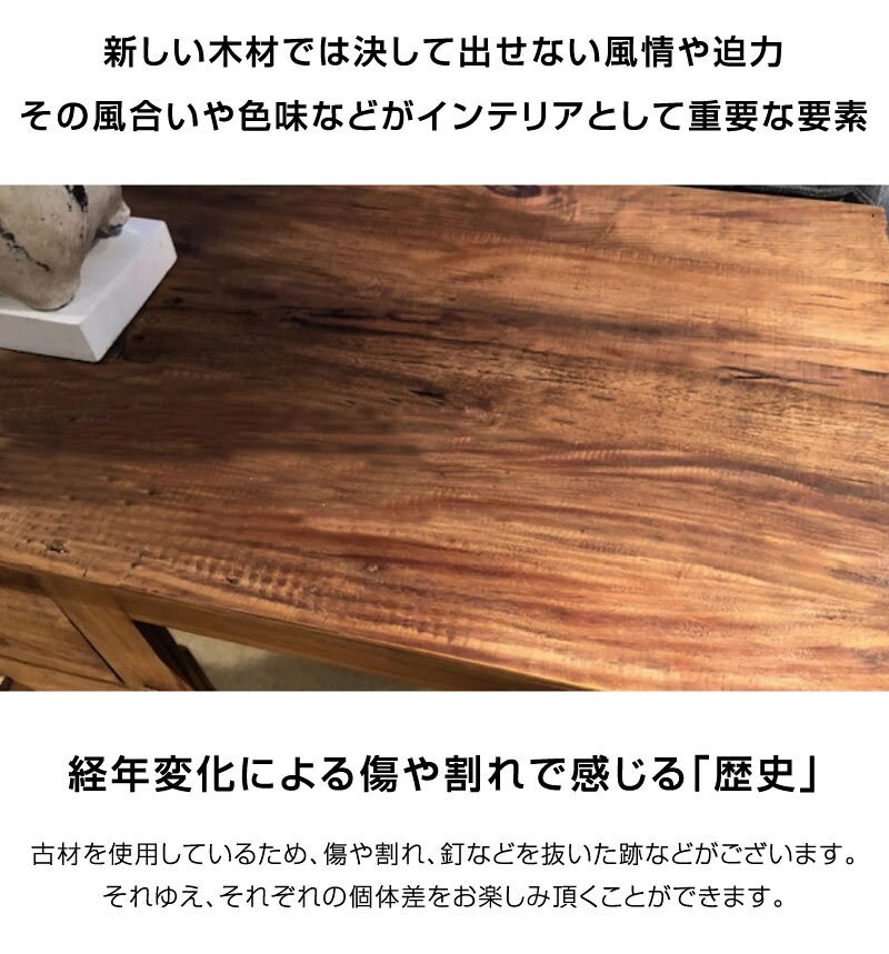 ・リサイクル材を使用しておりますので、釘を抜いた跡や虫食い跡がございます。 ・木の節や傷み具合は一品一品個体差があります。ご了承ください。 |