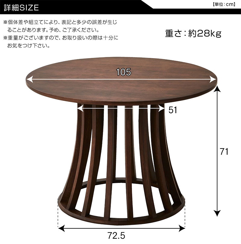 ダイニングテーブル 丸テーブル 円型 105cm 丸型 形 アンティーク 木製 円形テーブル おしゃれ 無垢材 ラウンドテーブル 円卓 単品 / ブラウン / -ART