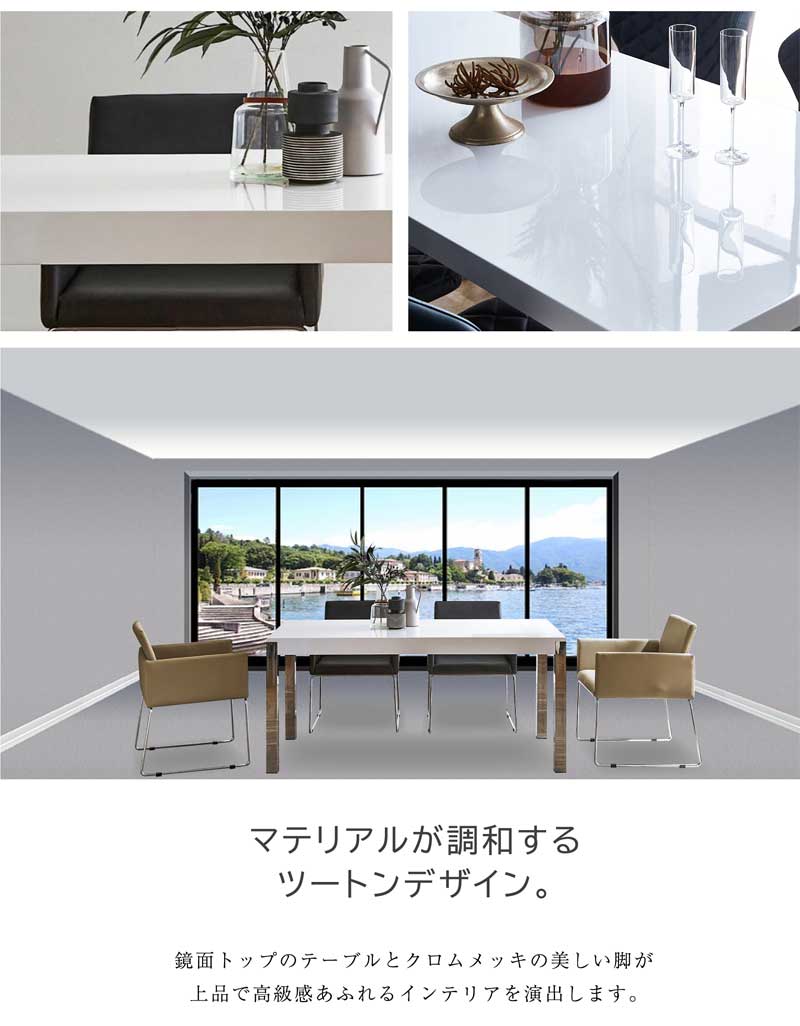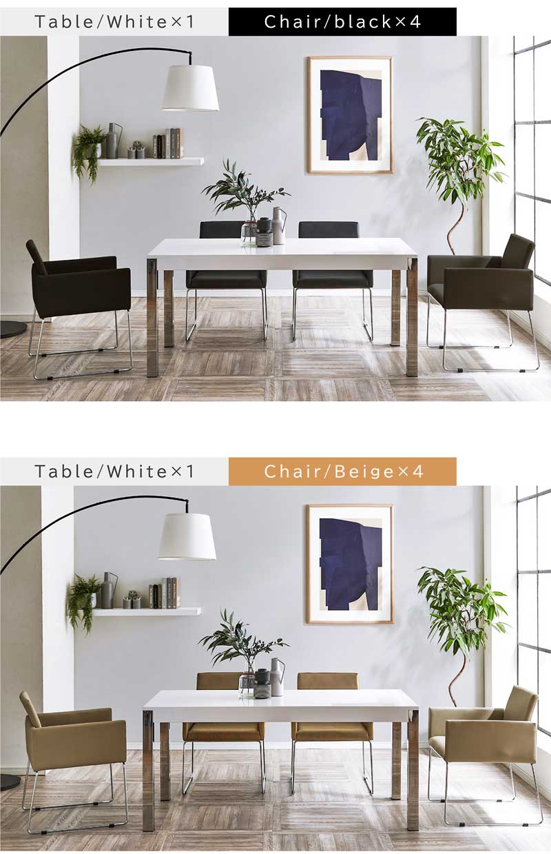 ダイニングテーブル5点セット (テーブル+チェア4脚) シンプル 4人掛け 160cm 鏡面 クロームメッキ 白 ホワイト ブラック ベージュ モダン おしゃれ 高級 / テーブル:ホワイト / チェア:ブラック / -ART