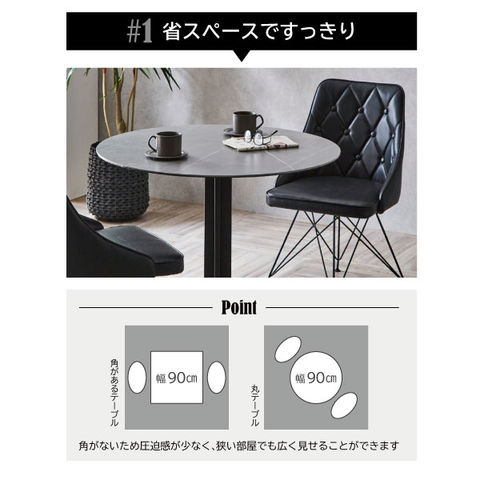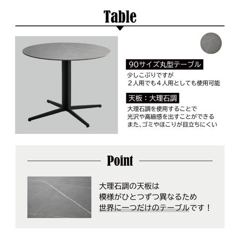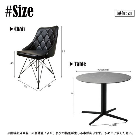 | サイズ | テーブル:幅90x奥行き90x高さ70(cm) チェア:幅48x奥行き56x高さ82(cm) |
