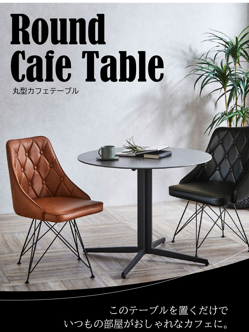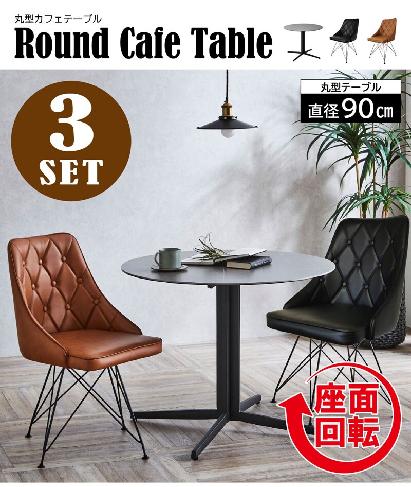 カフェテーブル ダイニングテーブル 丸テーブル チェア 回転式 黒 大理石 2人用 韓国インテリア ブラック ブラウン 省スペース 幅90cm 高さ70cm / テーブル:ブラック / チェア:ブラウン / -ART