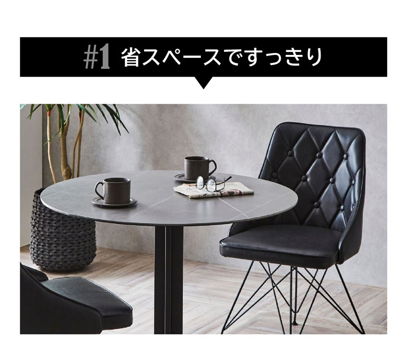 | 特徴 | ・省スペースですっきり ・ホワイトを基調とした清涼感あるモデル ・座面360度回転 ・脚部はアジャスタ付きで滑りにくい ・キズや熱に強く、汚れても安心なセラミック天板使用 |