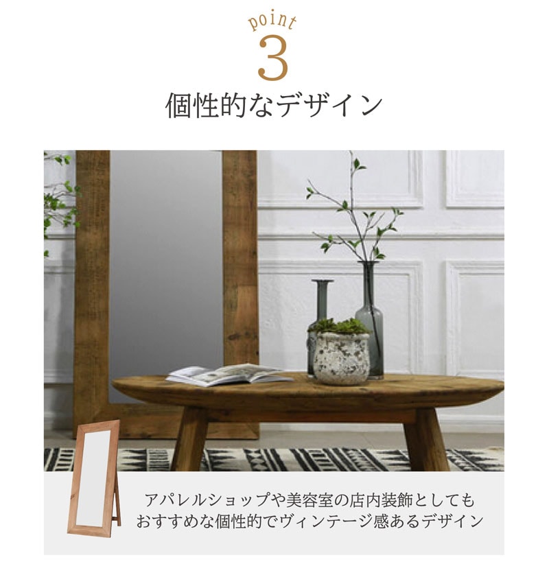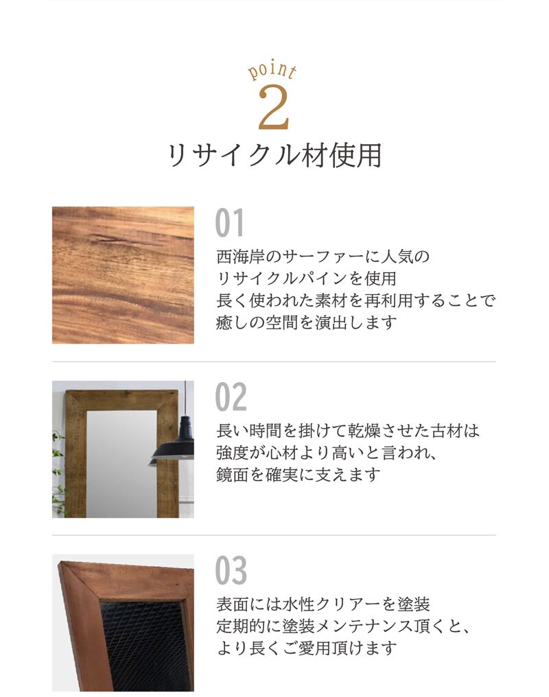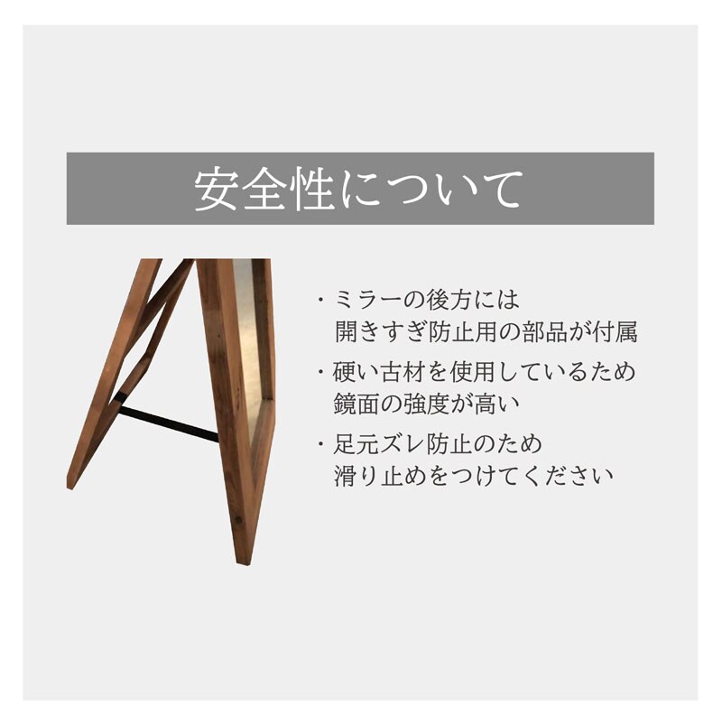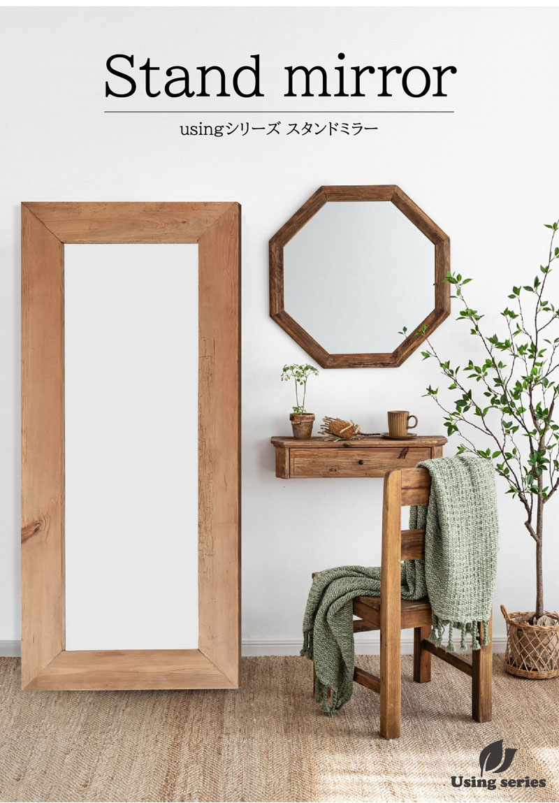 スタンドミラー 全身鏡 ミラー 大型 木製 リサイクルパイン 古材 断熱 消臭 抗菌 西海岸 おしゃれ 幅80cm 高さ180cm 家具 / ブラウン / -ARTのレビュー