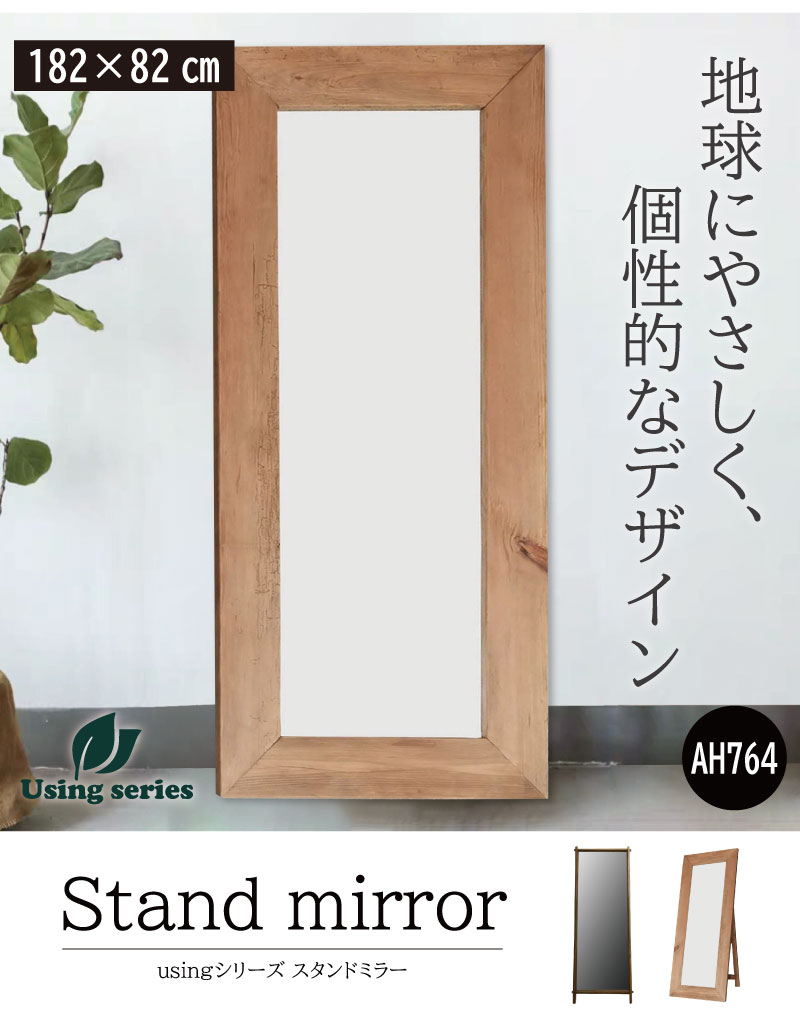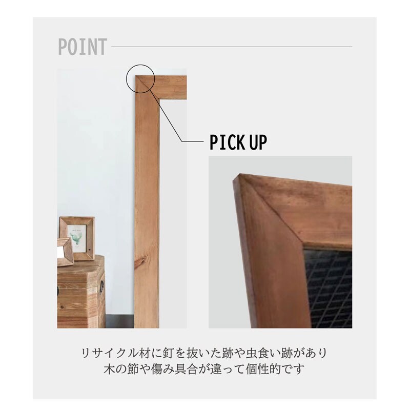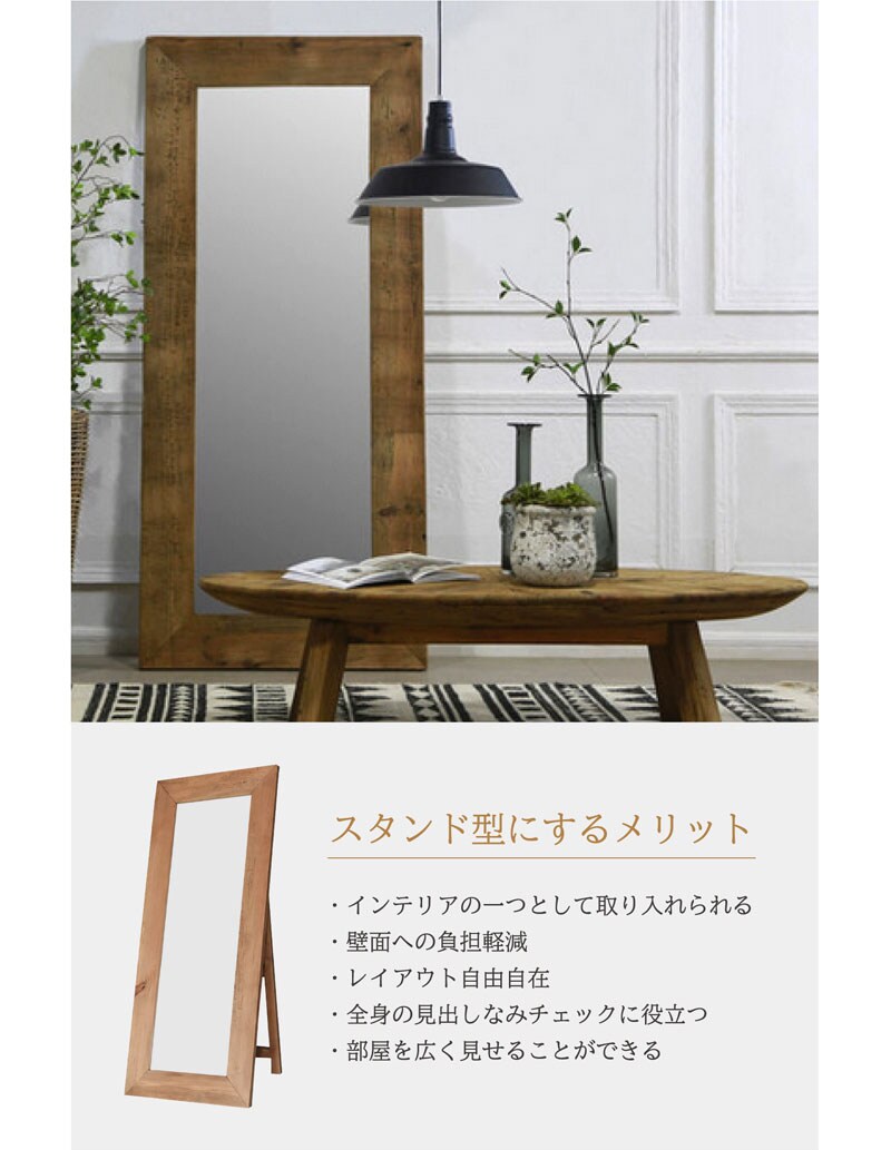 スタンドミラー 全身鏡 ミラー 大型 木製 リサイクルパイン 古材 断熱 消臭 抗菌 西海岸 おしゃれ 幅80cm 高さ180cm 家具 / ブラウン / -ART