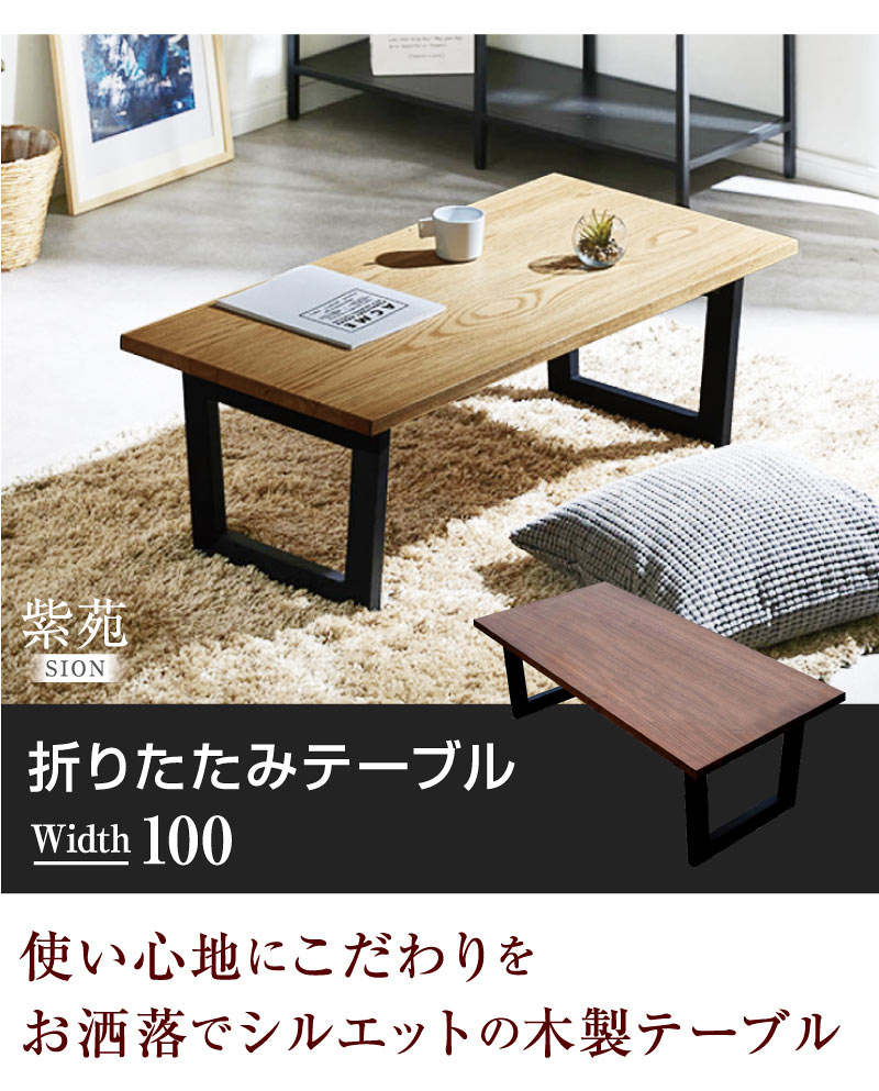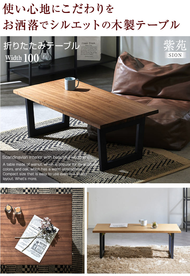 テーブル センターテーブル ローテーブル リビングテーブル 折りたたみ おしゃれ コーヒーテーブル 座卓 カフェ風 幅100 天然木 北欧 モダン シオン / オーク / -ART