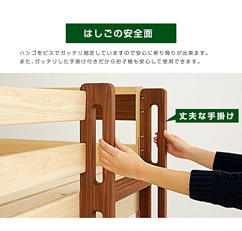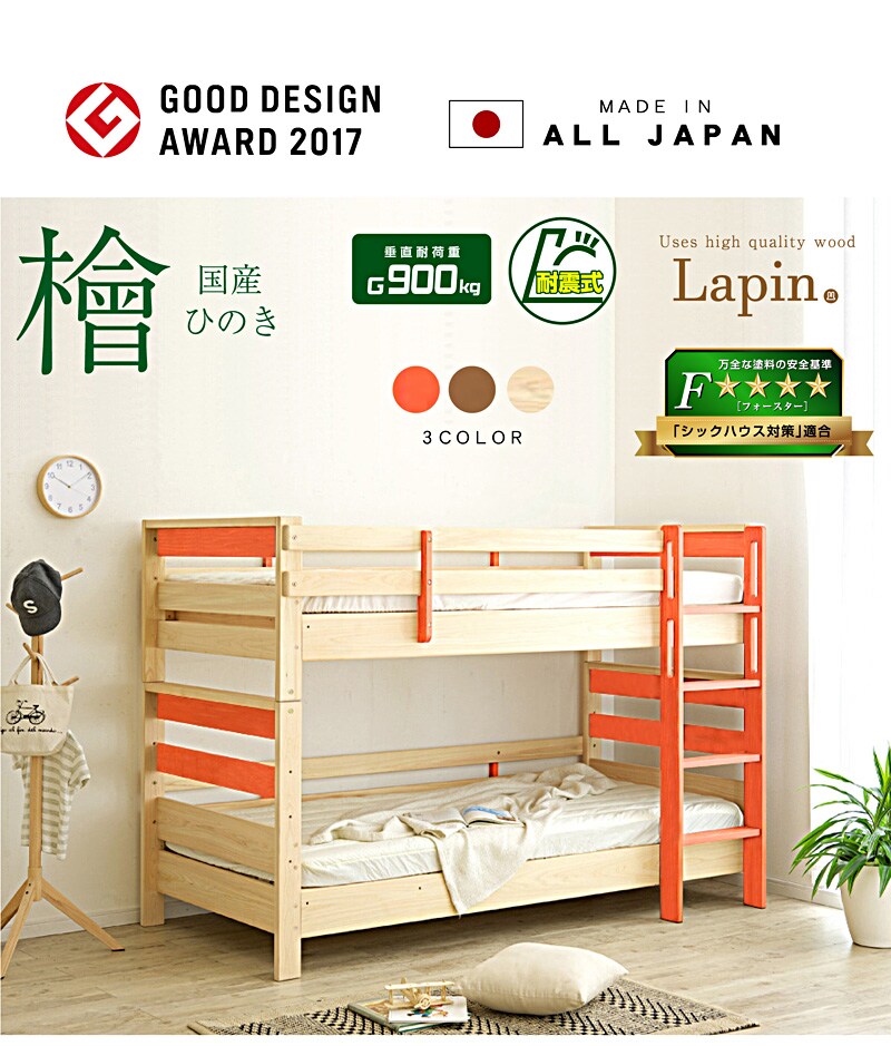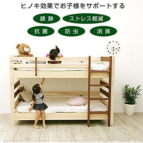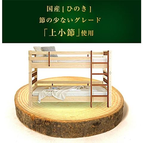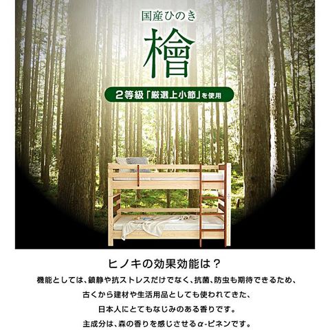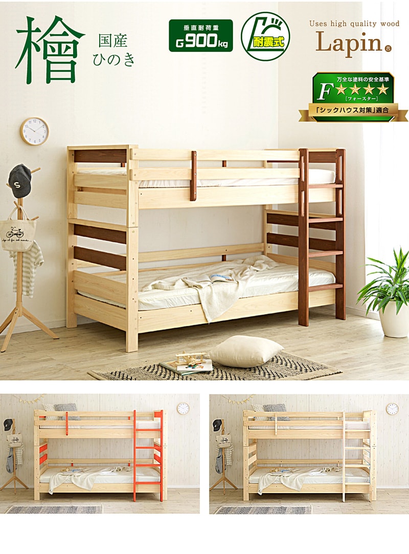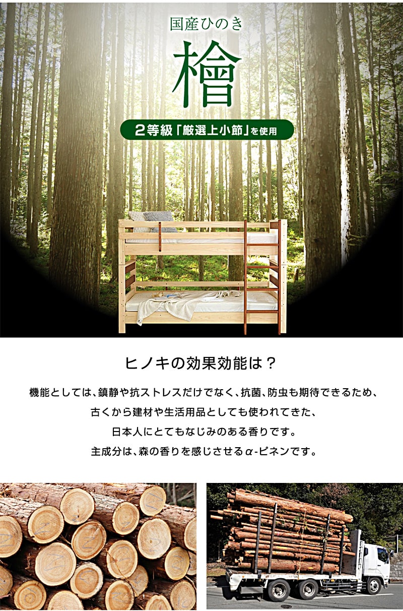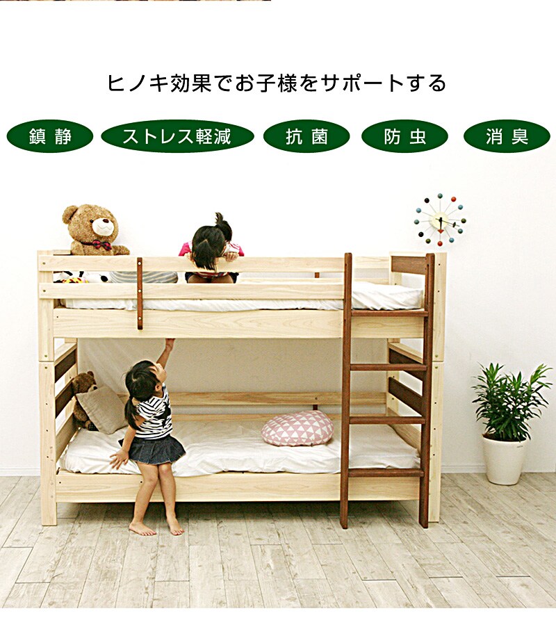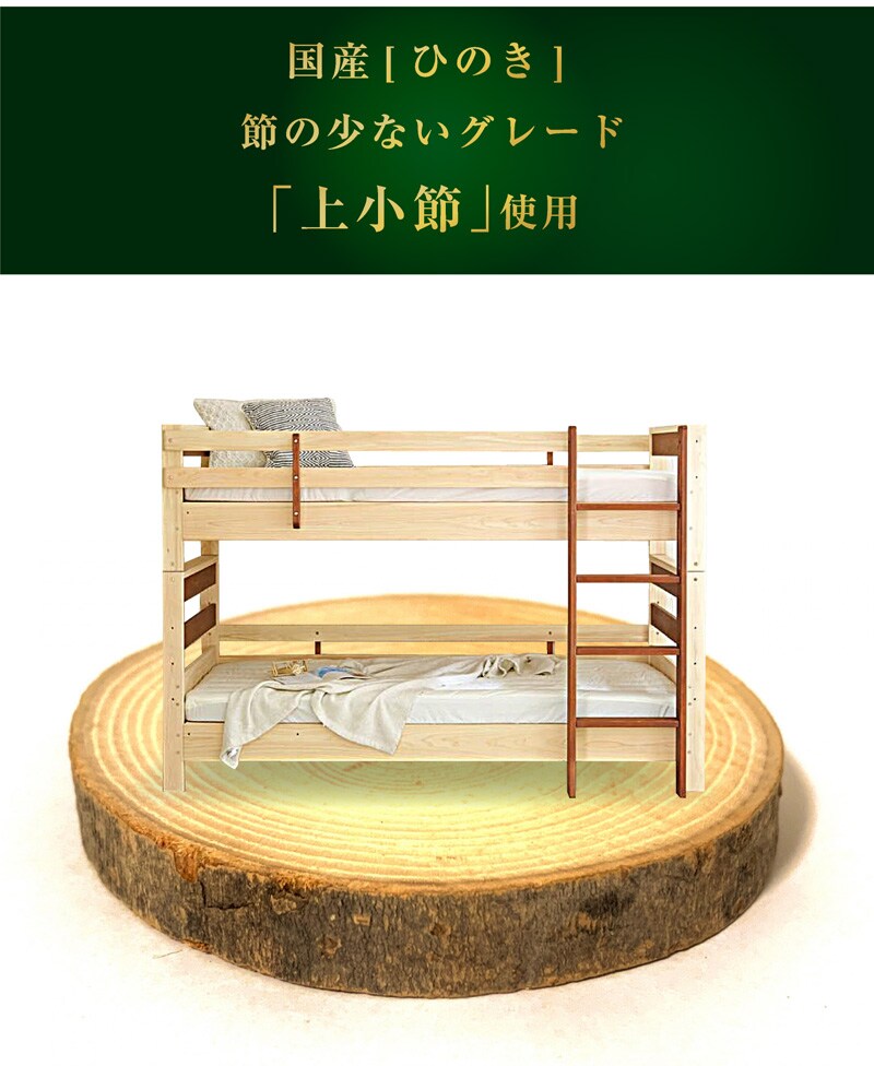 国産ヒノキ使用 二段ベッド 2段ベッド 子供用ベッド キッズベッド 檜 桐 天然木 シングル キング ラパン 本体のみ / ナチュラル / ーART