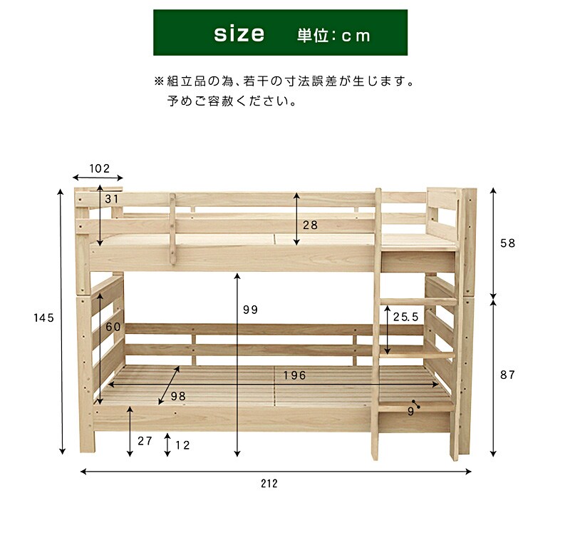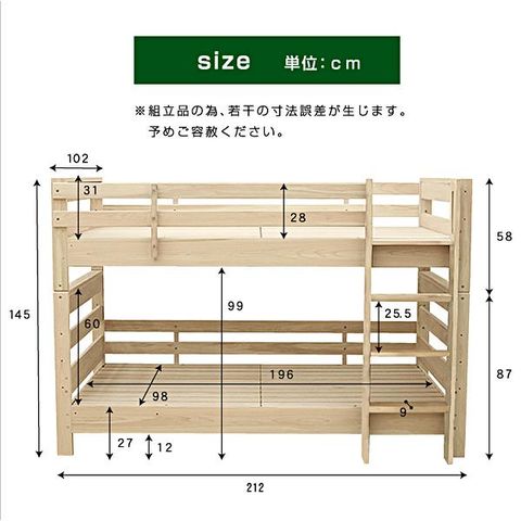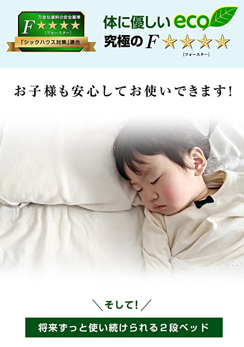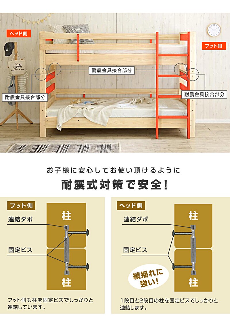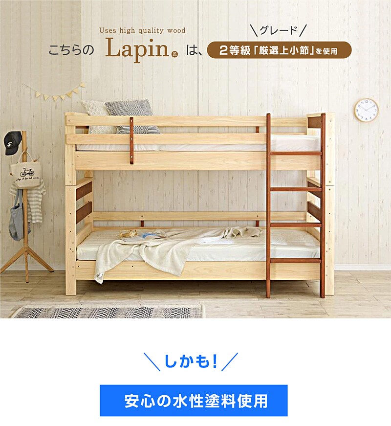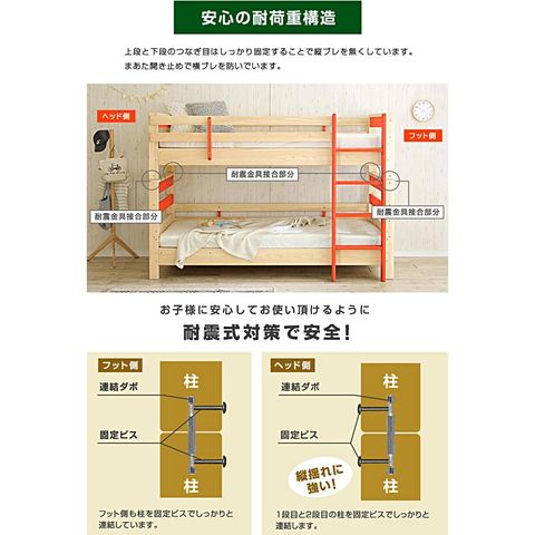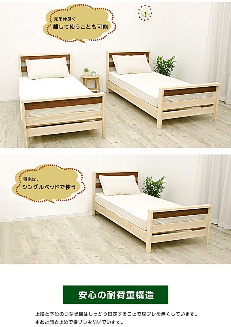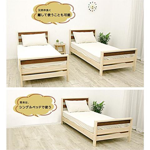 | 特徴 | ・左右差し替え可能 ・上下段ベッド ・組替え可能 2段ベッド/ツインベッド/シングルベッド ・低ホルムアルデヒド |