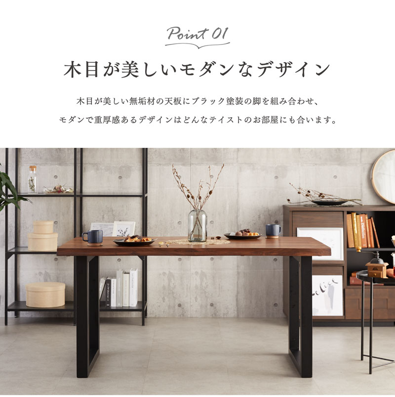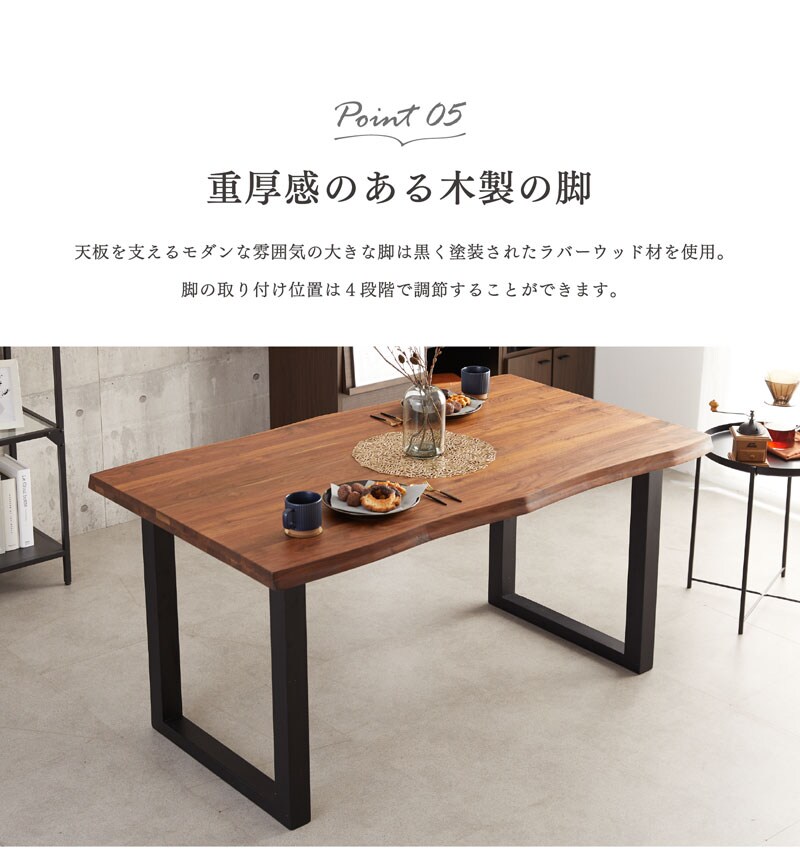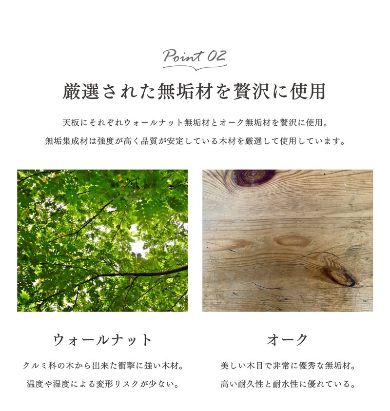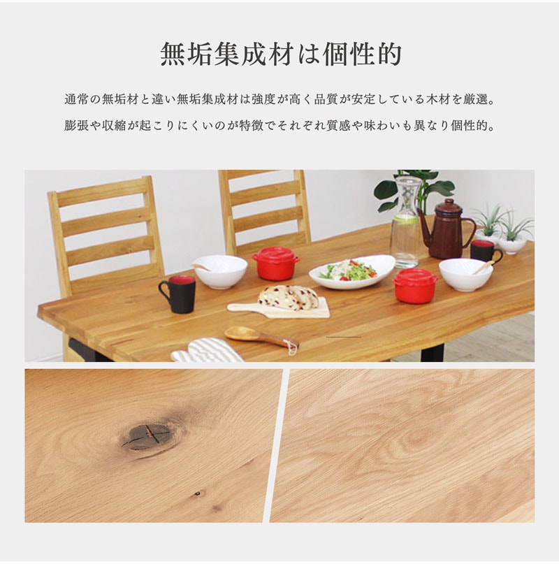 | 材質 | 天板:オーク/ウォールナット無垢材 脚部:ラバーウッド無垢材 |