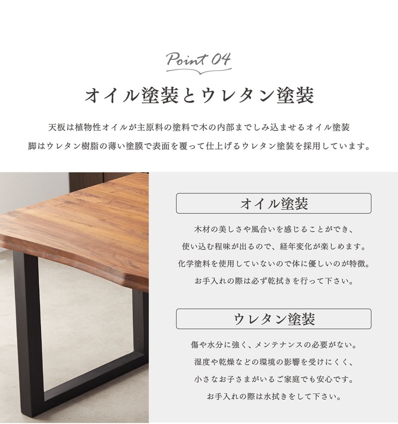 | 塗装 | 天板:オイル塗装 脚:ウレタン塗装 |