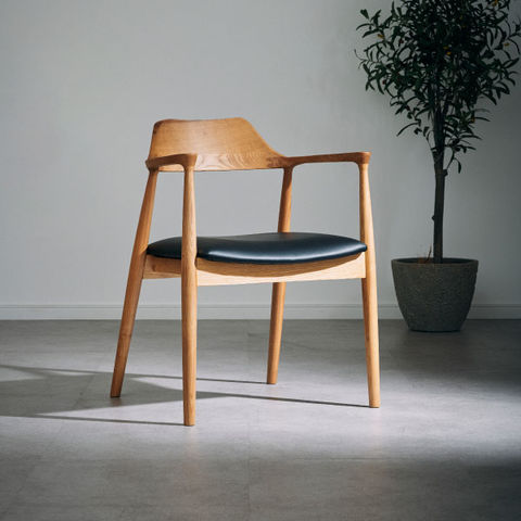 ダイニングチェア 無垢材 北欧 座面高44 木製 肘付き 完成品 ウォールナット オーク ブラック グレー 黒 おしゃれ モダン Orion オリオン / 木目:オーク / 座面:PVCレザーブラック / -ART