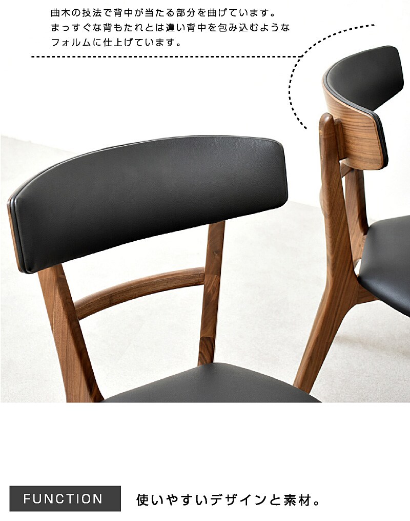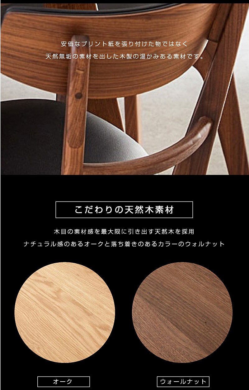 | 材質 | フレーム:ウォールナット無垢集成材/背:LVL/座面:PVC |