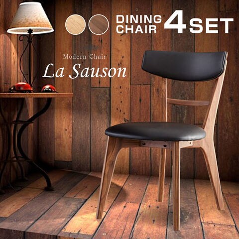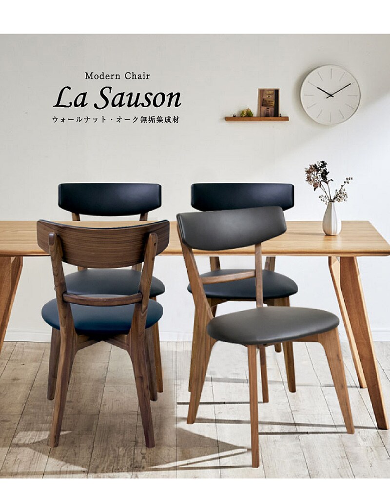 ダイニングチェア 4脚セット 無垢 集成材 木製 天然木 PVC 北欧 ダイニングチェアー ウォールナット オーク ダイニング用 四脚セット おしゃれ ラ・セゾン / ウォールナット / -ART