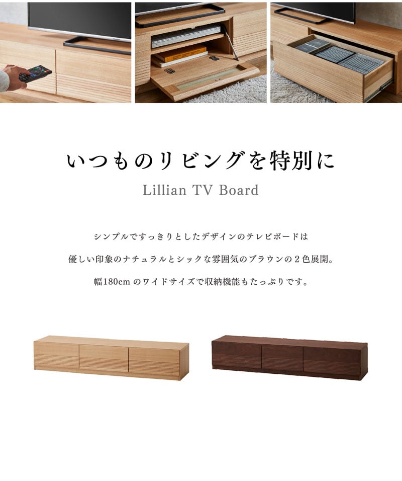 テレビボード 幅180cm ローボード TVボード 180センチ 収納 木目 モダン シンプル 北欧 木製 ブラウン ナチュラル 引き出し Lillian リリアン / ブラウン / -ART