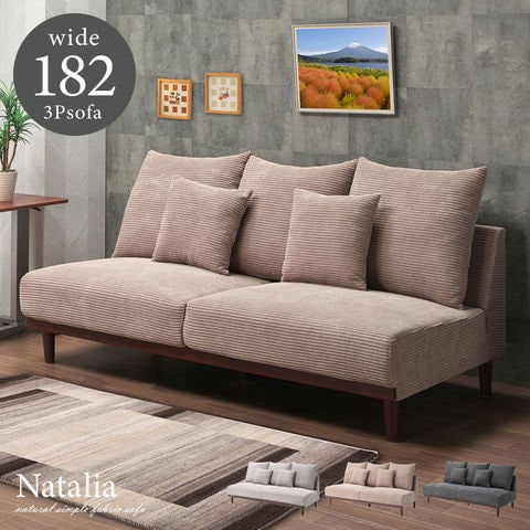 3Pソファ 幅182cm アームレスソファ ハイタイプソファ 天然木 クッション付き ファブリック コーデュロイ アームレス ハイタイプ ナタリア / カフェ / -ART