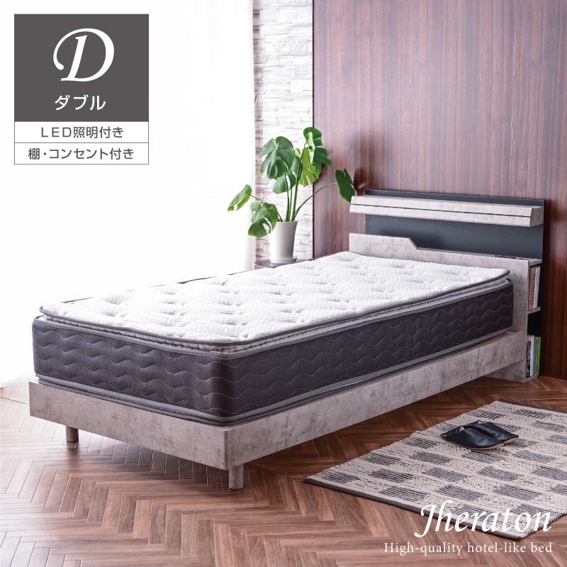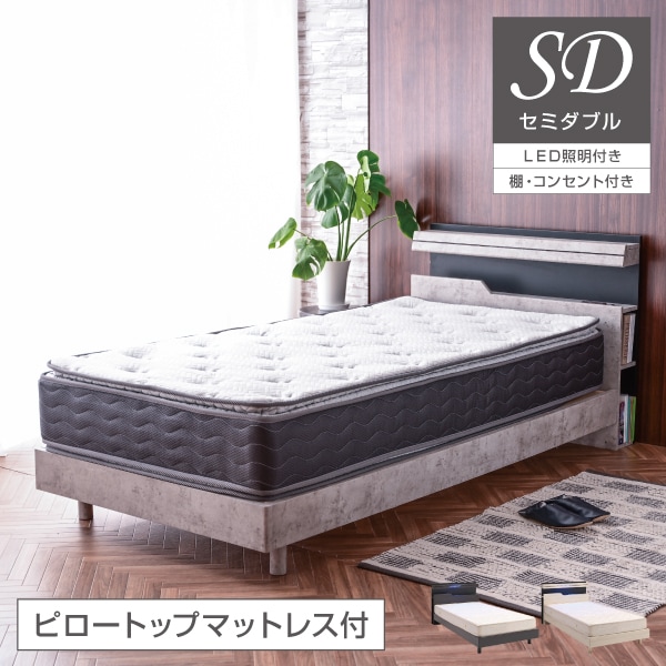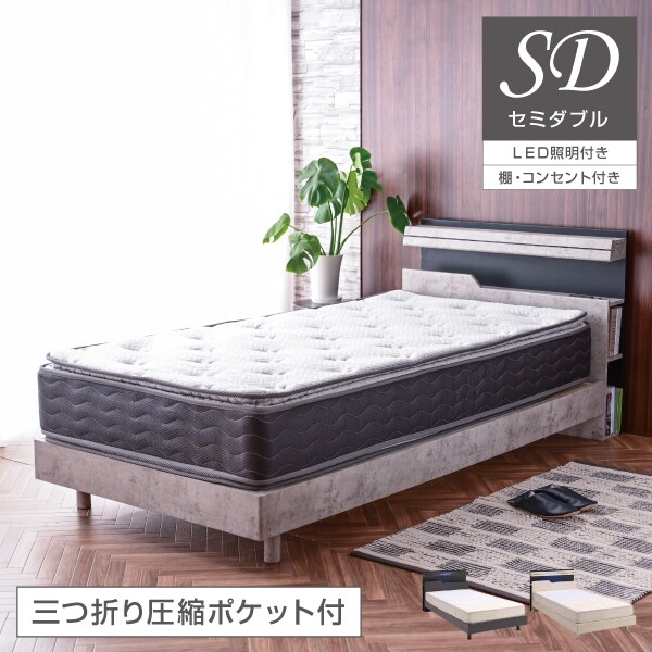 ベッド セミダブル フレーム ベッドフレーム セミダブルベッド ブックシェルフ ホテルライク 収納 高級 おしゃれ ジェラトン / ホワイト / (ピロートップ 圧縮ポケットマットレス付き) -ART