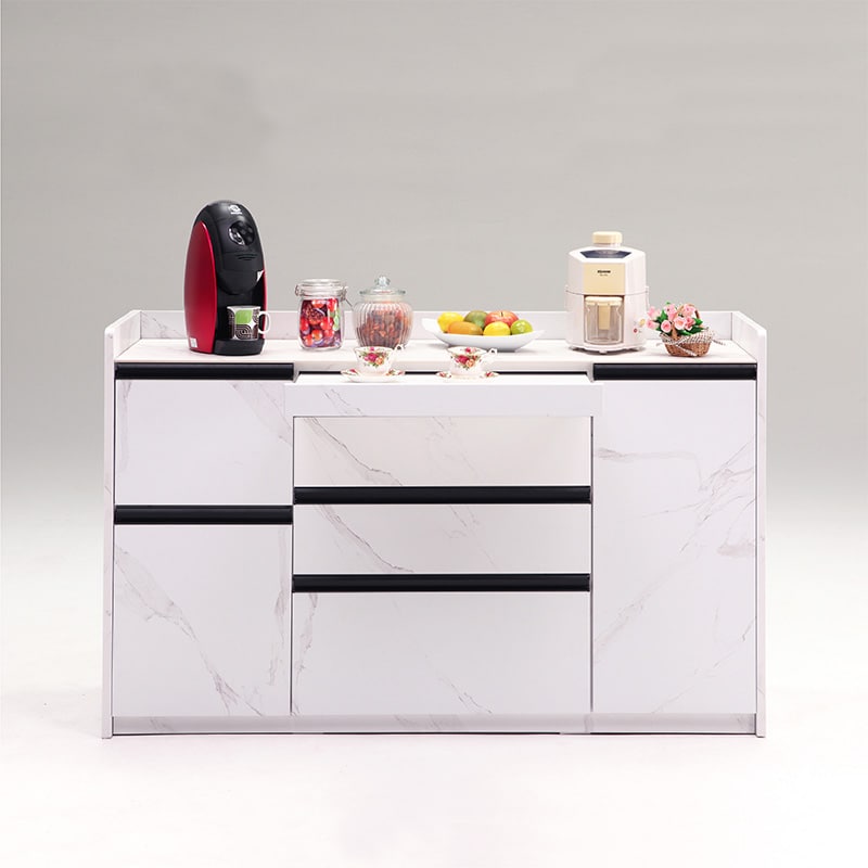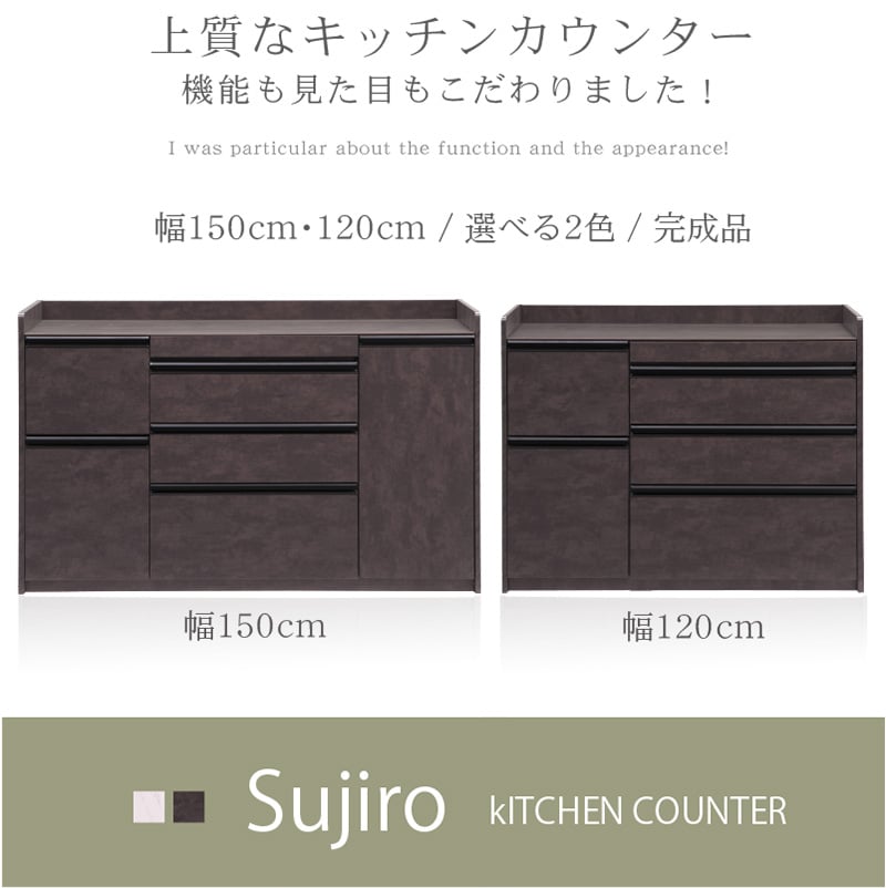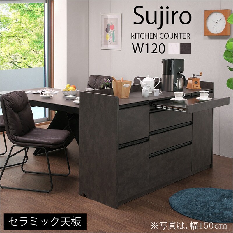 キッチンカウンター W150cm キッチン収納 キッチンラック レンジボード セラミック天板 フルスライドレール スライド天板 コンセント付き 大容量 スジロ / ホワイト / -ART