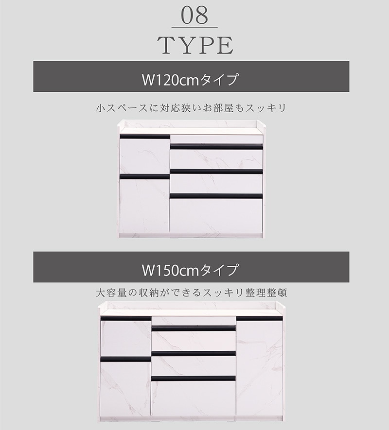 | サイズ | W120タイプ:幅120×奥行き45×高さ90(cm) 重量86kg W150タイプ:幅150×奥行き45×高さ90(cm) 重量99kg |