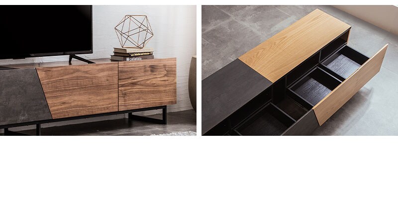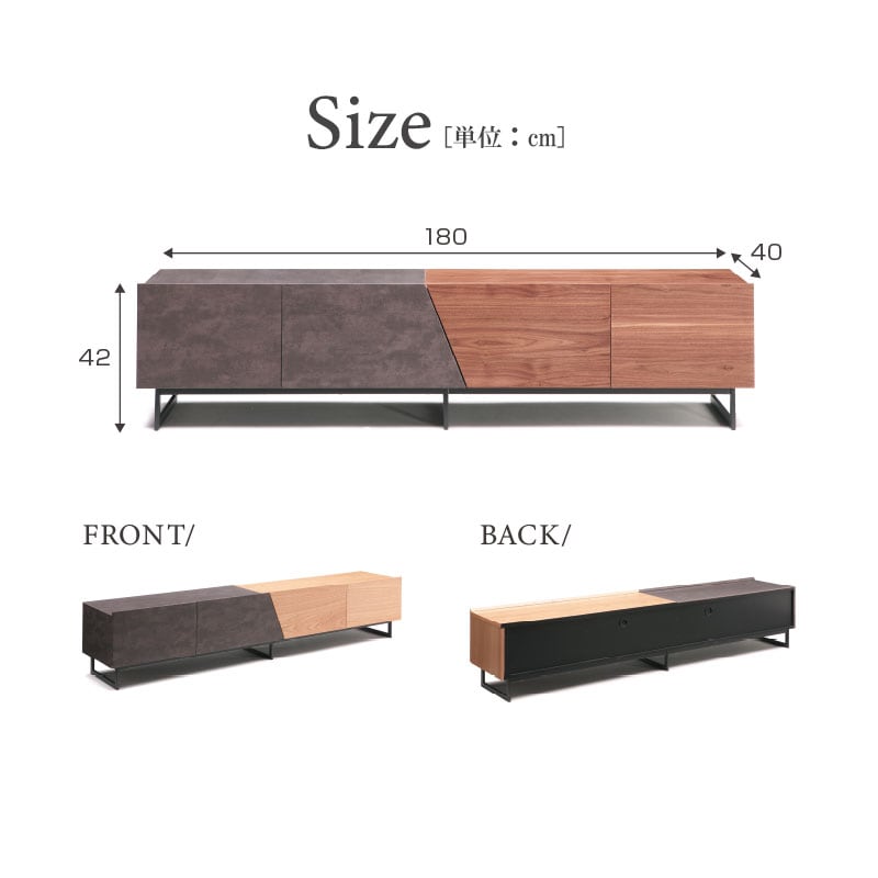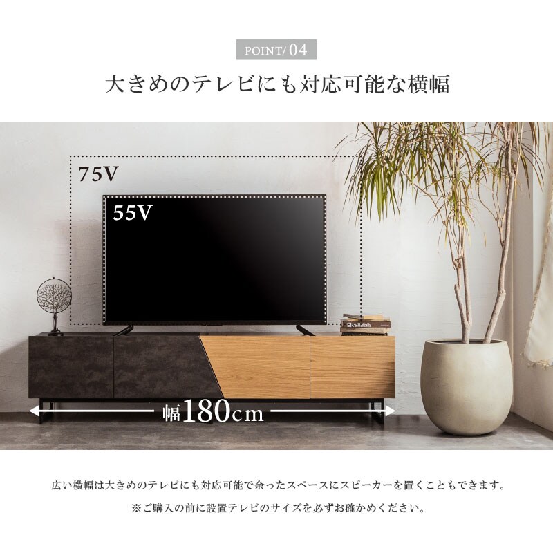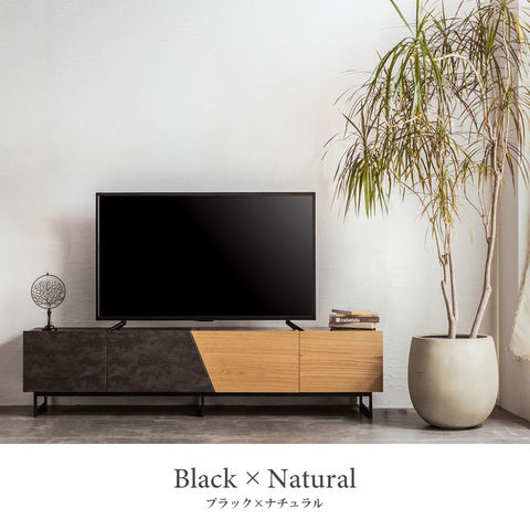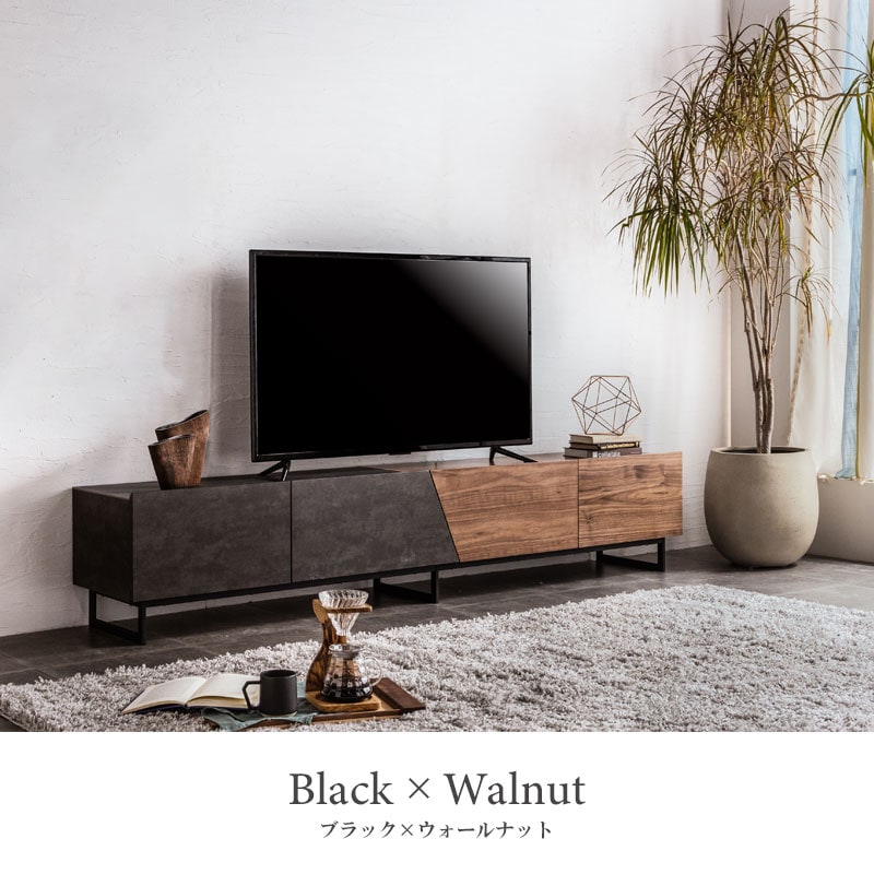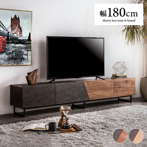 テレビ台 テレビボード ローボード 幅180cm ツートン セラミック 木目 収納棚 リビング 大人 モダン おしゃれ 大きい 人気 おすすめ Sherry シェリー / ブラック×ウォールナット / -ART