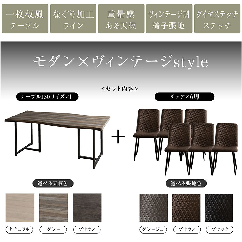 ダイニングテーブルセット 6人掛け 7点セット 180cm テーブル おしゃれ ダイニングセット ナチュラル 一枚板風 コペン180(テーブル+チェア6脚) / テーブル:グレー / チェア:ブラウン / -ART