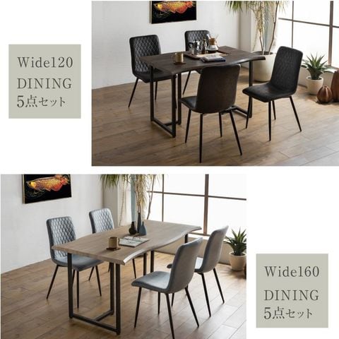 | テーブル幅120+椅子4脚 | テーブル幅160+椅子4脚 | テーブル幅180+椅子6脚 |