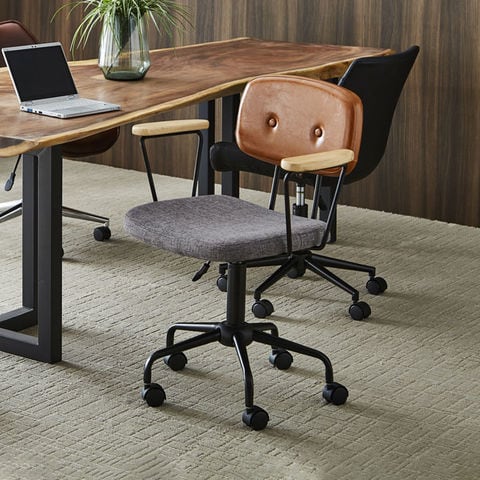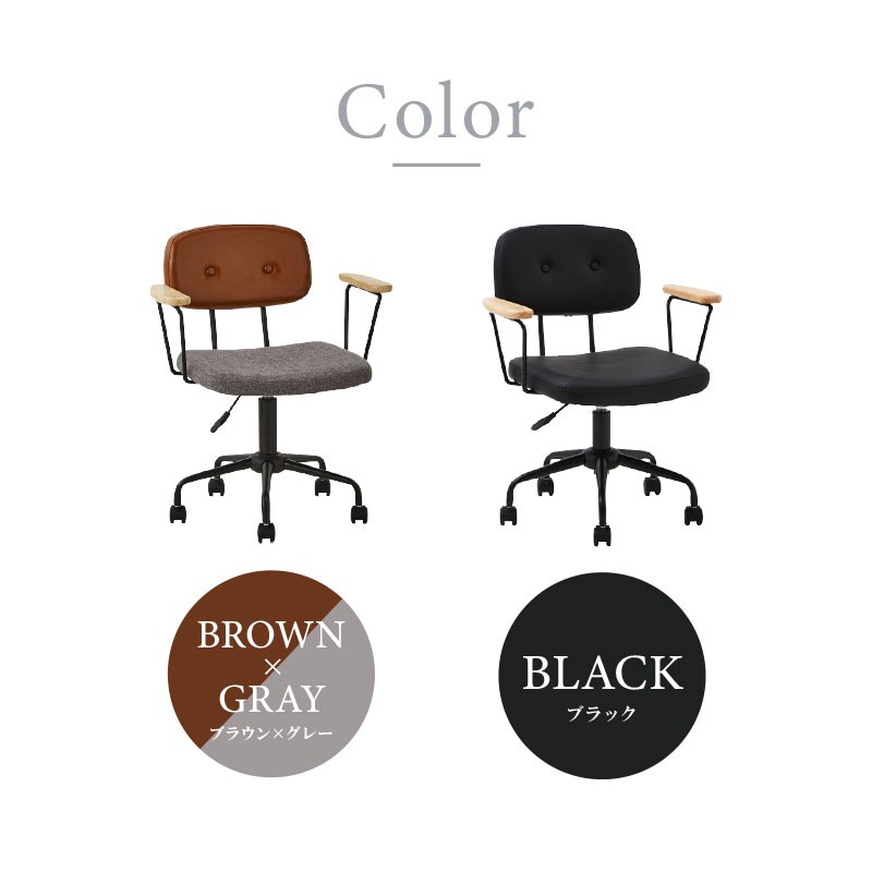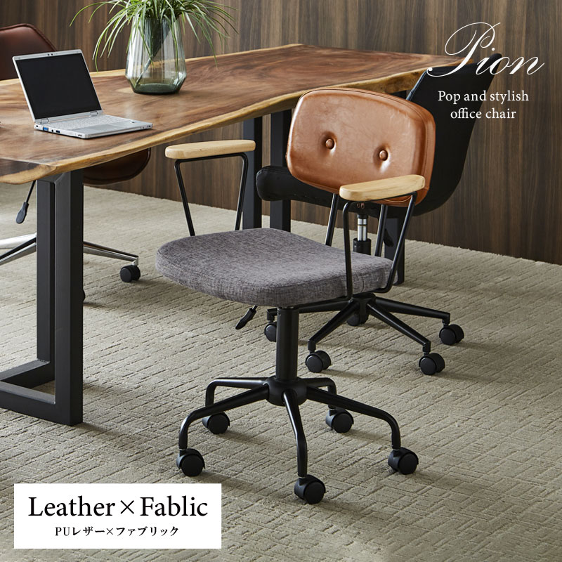 デザインチェア レトロ ファブリック 布 レザー 回転式 座面回転 キャスター付き 昇降式 ツートン 北欧 韓国 インテリア ピオン / ブラウン×グレー / -ART