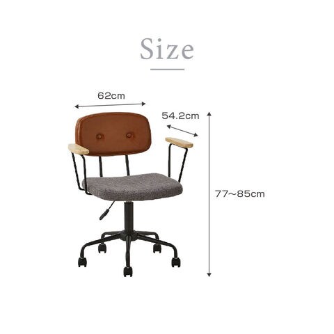 | サイズ | 幅62×高さ77〜85×奥行54.2(cm) 座面高:42.5〜50.5(cm) |