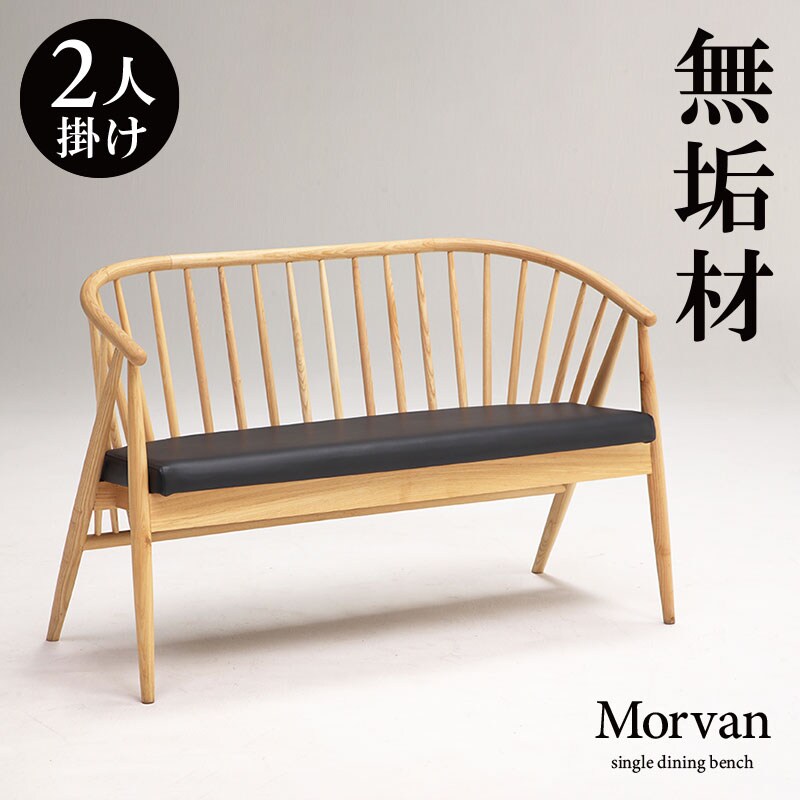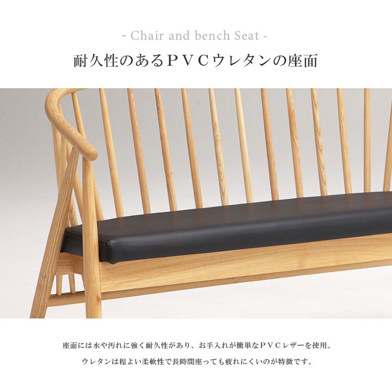 ダイニング2Pチェア ダイニングベンチ 和モダン ダイニングチェア ダイニングソファ 2P 無垢 天然木 アッシュ タモ 木目 レザー 和風 モダン モルヴァン / ナチュラル / -ART
