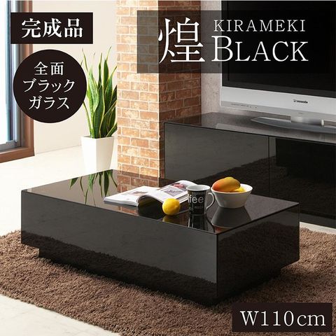 センターテーブル リビングテーブル ブラック ガラス張り 北欧 完成品 幅110 ナイトテーブル ガラステーブル ローテーブル モダン 煌き / ブラック / -ART