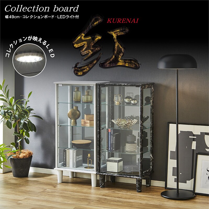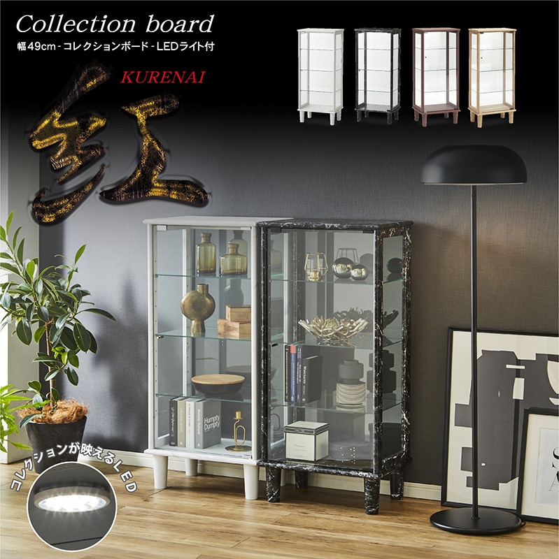 LED照明付 コンパクト コレクションケース おしゃれ コレクションボード 収納 幅49 奥行35 高さ115cm 紅 / ブラック / -ART