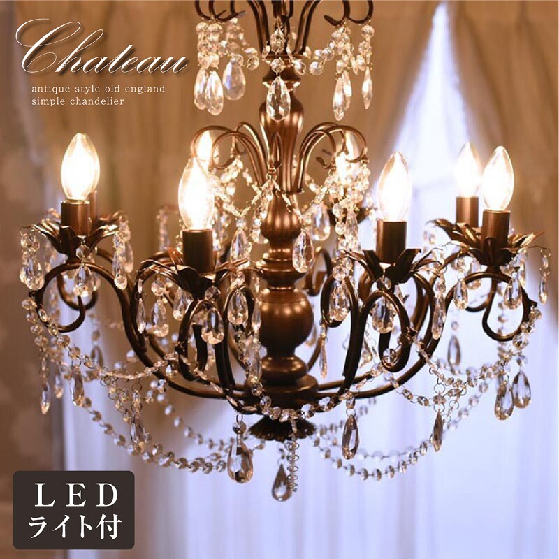 | 特徴 | ・シックなアンティーク調!! ・オールドイングランド調のシャンデリアが8灯になりました!! ・お部屋の雰囲気を素敵に変える、女性の憧れ! ・軽量・簡単取付・LED電球付き |