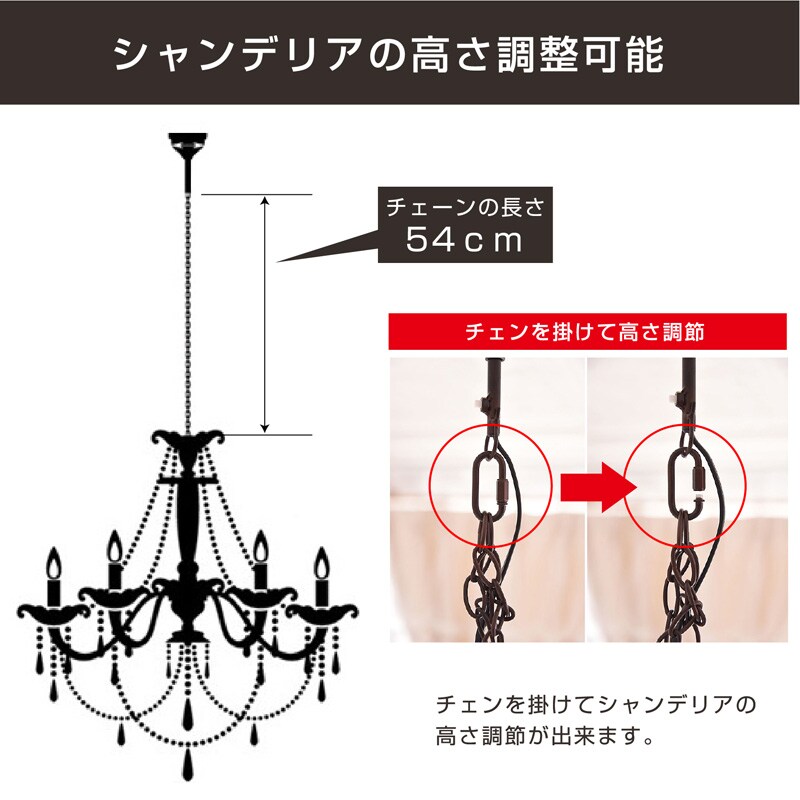 | 対応する電球 | 付属品:LED電球(口金E12/110V/6W)×8灯(LED電球、白熱電球) 白熱電球の場合(1灯)110V/MAX40W |