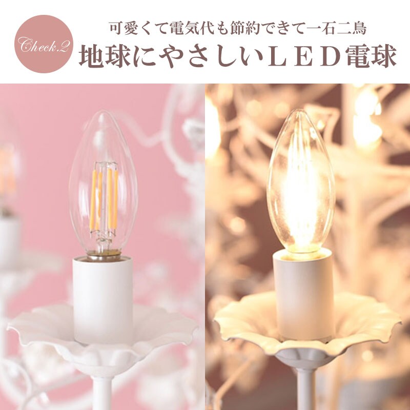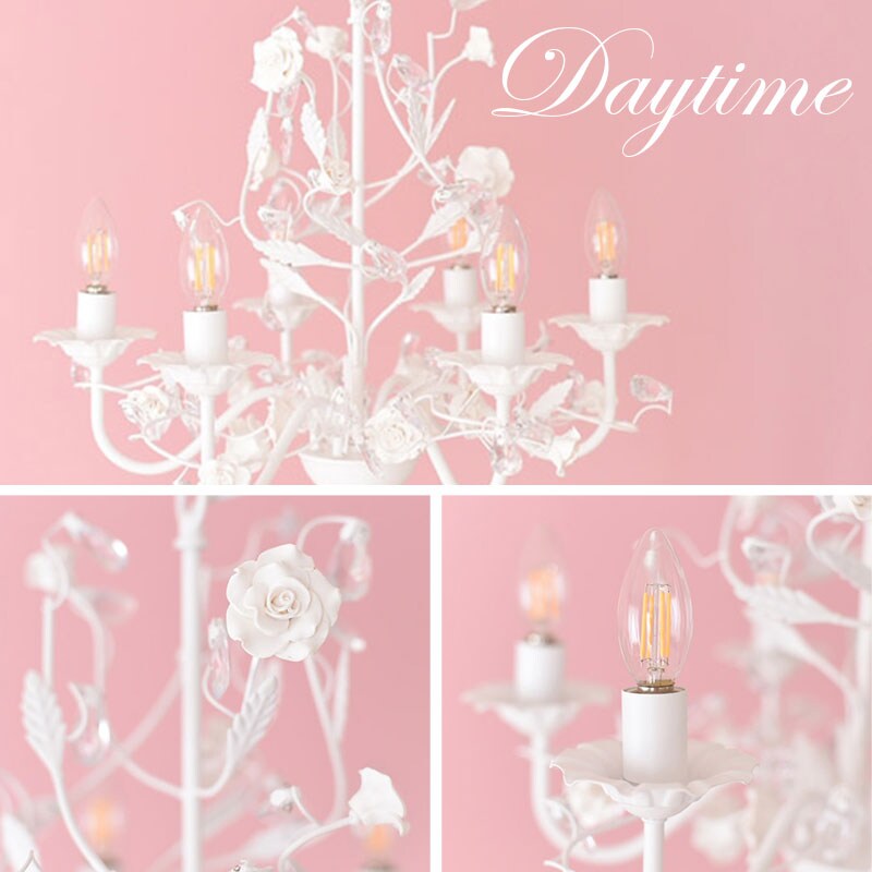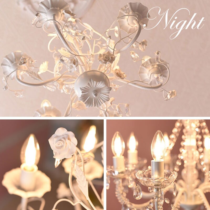 | 概要 | ちょっと大人のシャンデリア♪白い薔薇が可愛く映えます。 アイアンのモチーフが、ヨーロッパの雰囲気を演出してくれます。 お部屋の雰囲気を素敵に変える、女性の憧れ!「SAお手軽シャンデリア」シリーズです。 軽量・簡単取付・LED電球付き・リーズナブルなプライスが嬉しい限りです。 |