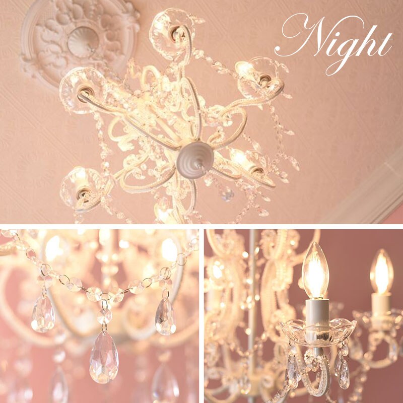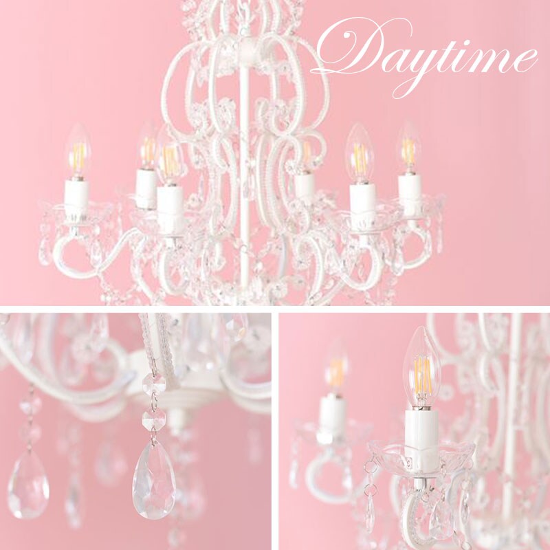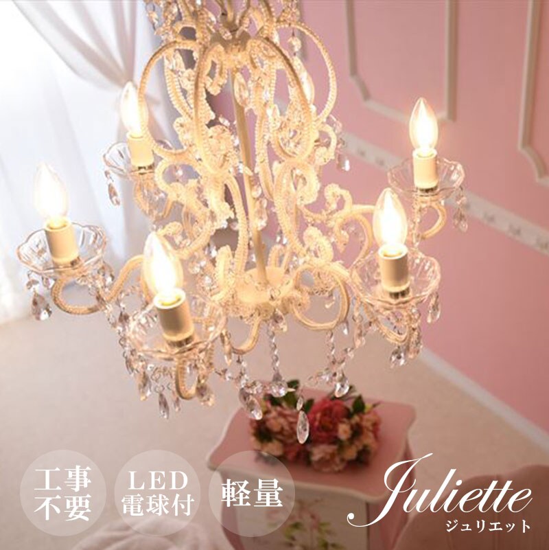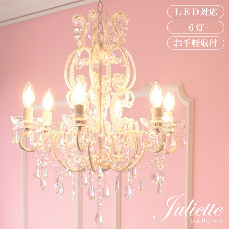 お手軽取付 LEDライト付 6灯 シャンデリア プリンセスホワイトDX 姫系家具 大人かわいい アンティーク調 プリンセス ガーリー Juliette ジュリエット / プリンセスホワイトDX / -ART