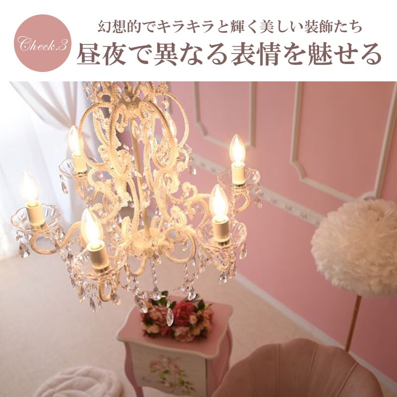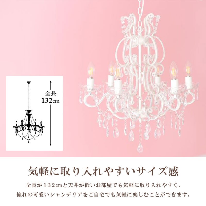 | 概要 | 白にこだわった 輸入家具屋のシャンデリア! 王道のクリアなシャンデリアの光を感じてください。 お部屋の雰囲気を素敵に変える、女性の憧れ!「SAお手軽シャンデリア」シリーズです。 軽量・簡単取付・LED電球付き・リーズナブルなプライスが嬉しい限りです。 |