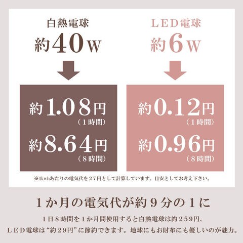 | 対応する電球 | LED電球、白熱電球 口金E12 |
