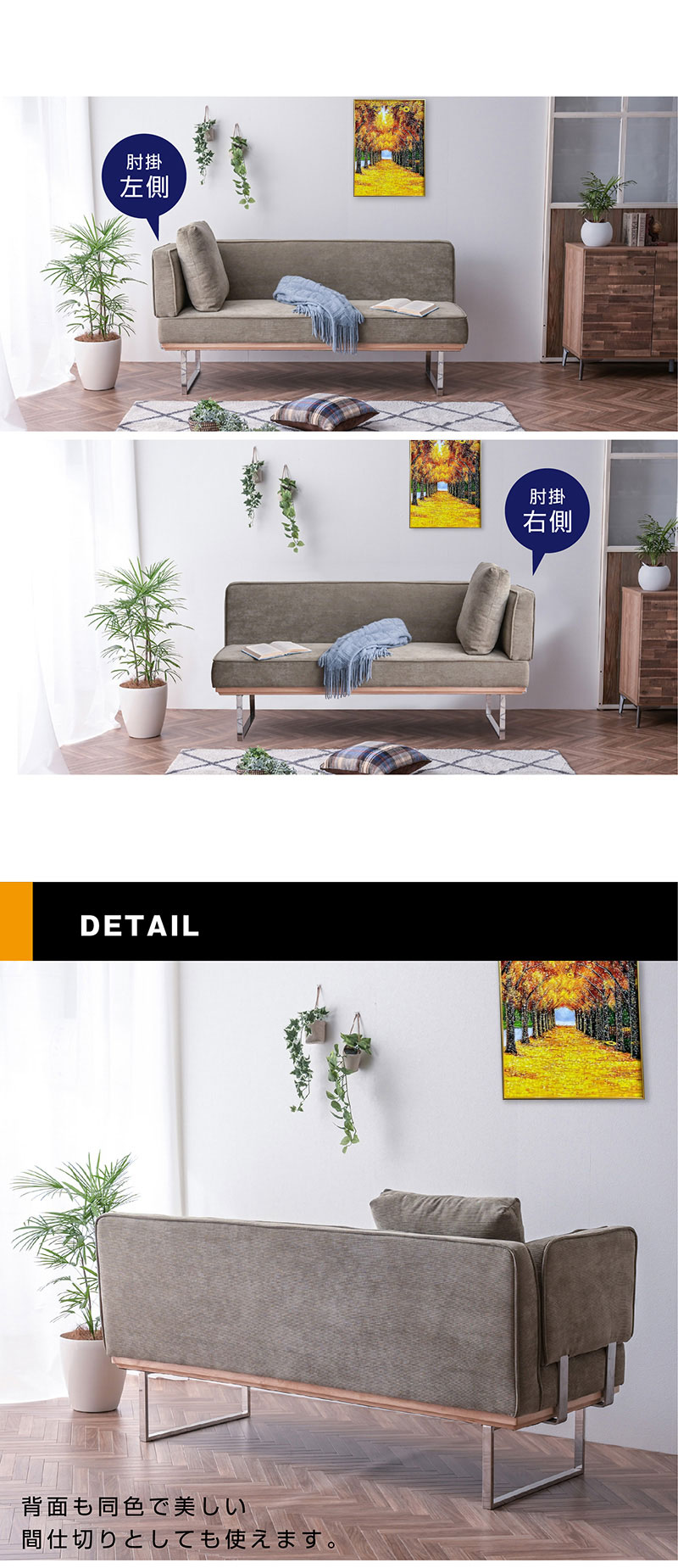 | サイズ | 1P:W550 D700 H800(SH450) mm 2P:W1250 D700 H800(SH450) mm 3P:W1670 D700 H800(SH450) mm |