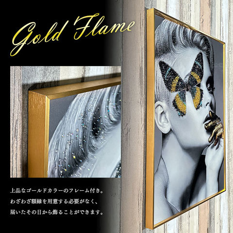 水晶パネル アートパネル 水晶絵 60×80cm 金フレーム付き 女性 クリスタル ゴールド 絵 イラスト おしゃれ 高級感 モダン KH246 -ART