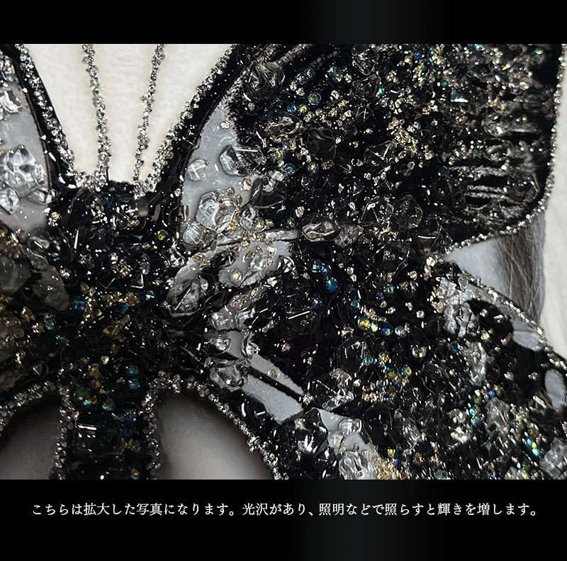 | 注意 | ・ハンドメイドでの貼り付けのため、水晶風パーツの個数・配置に個体差がございます。 ・本商品には重量がございます。壁掛けて取り付け頂く際は必ず、壁の心材がある場所にボルトなどで固定してください。 ・本商品の特性上、輸送中の振動により装飾の一部が取れる場合がございます。予めご了承ください。 |