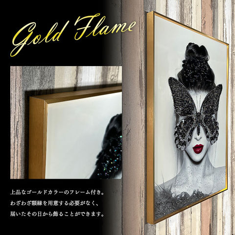 水晶パネル アートパネル 水晶絵 60×80cm 金フレーム付き 女性 クリスタル ゴールド 絵 イラスト おしゃれ 高級感 モダン SX211B -ART