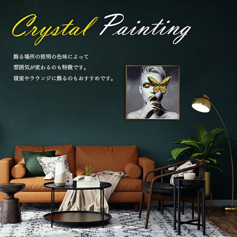 水晶パネル アートパネル 水晶絵 50×50cm 金フレーム付き 女性 人物 クリスタル 絵 イラスト おしゃれ 高級感 モダン EF255 -ART