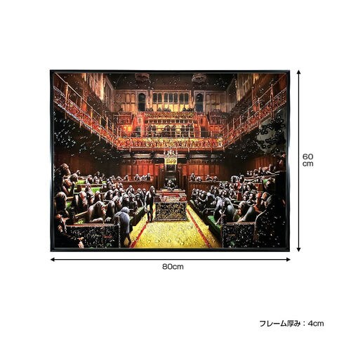 水晶パネル アートパネル 60×80cm バンクシー 猿の議会 黒フレーム付き クリスタル 絵 イラスト おしゃれ 高級感 KH742A-1 -ART