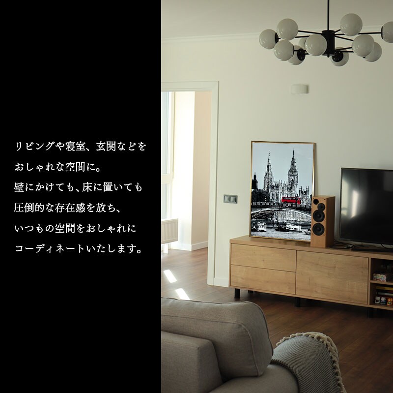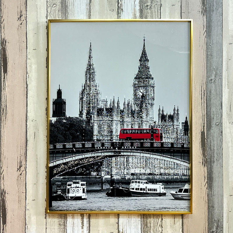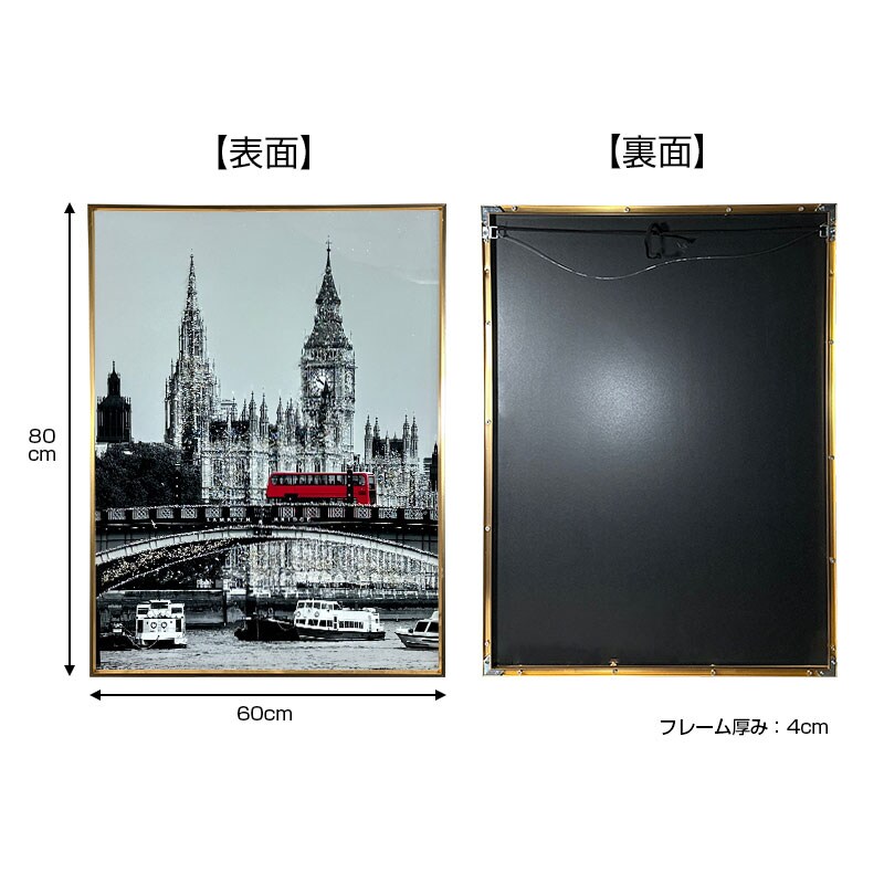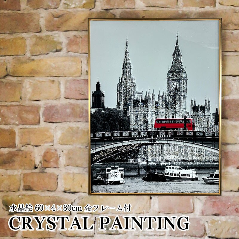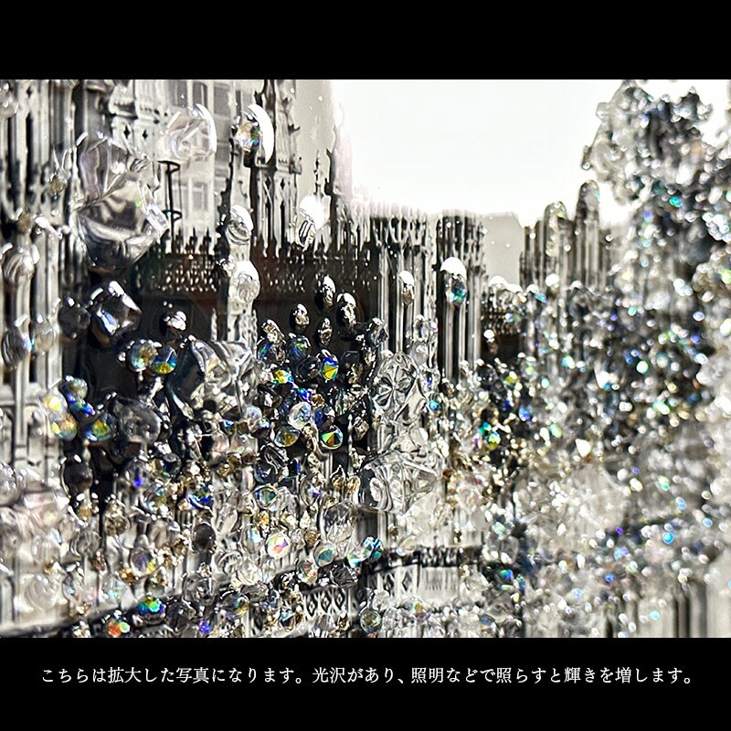 水晶パネル アートパネル 60×80cm 街並み 金フレーム付き クリスタル シルバー 絵 イラスト おしゃれ 高級感 SX176C -ART