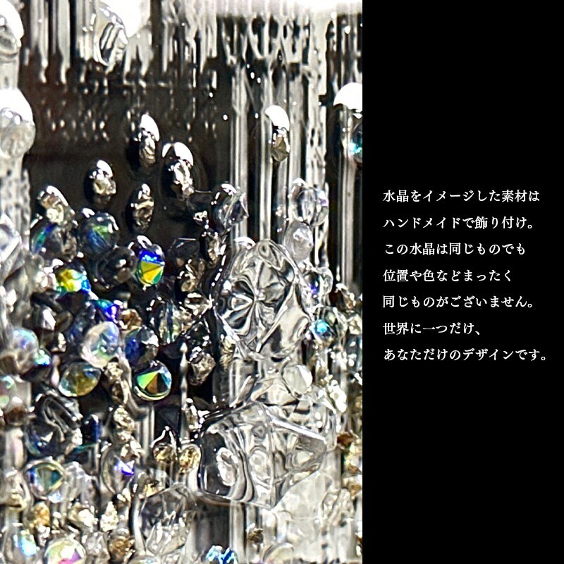 | 注意 | ・ハンドメイドでの貼り付けのため、水晶風パーツの個数・配置に個体差がございます。 ・本商品には重量がございます。壁掛けて取り付け頂く際は必ず、壁の心材がある場所にボルトなどで固定してください。 ・本商品の特性上、輸送中の振動により装飾の一部が取れる場合がございます。予めご了承ください。 |