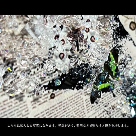 | 特徴 | ・水晶はハンドメイドで飾りつけし、高級感と立体感にこだわりました。 ・太陽光や照明の光を複雑に透過や屈折で光の乱舞を作り出して楽しむことができます。 ・飾る場所の照明の色味によって雰囲気が変わります。 ・上品なブラックカラーのフレームと裏面紐付き。 |