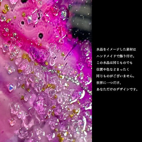 | 特徴 | ・水晶はハンドメイドで飾りつけし、高級感と立体感にこだわりました。 ・太陽光や照明の光を複雑に透過や屈折で光の乱舞を作り出して楽しむことができます。 ・飾る場所の照明の色味によって雰囲気が変わります。 ・上品なブラックカラーのフレームと裏面紐付き。 |